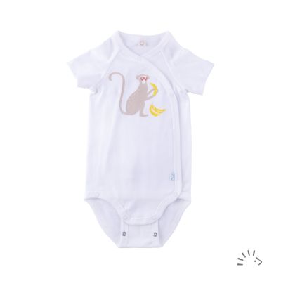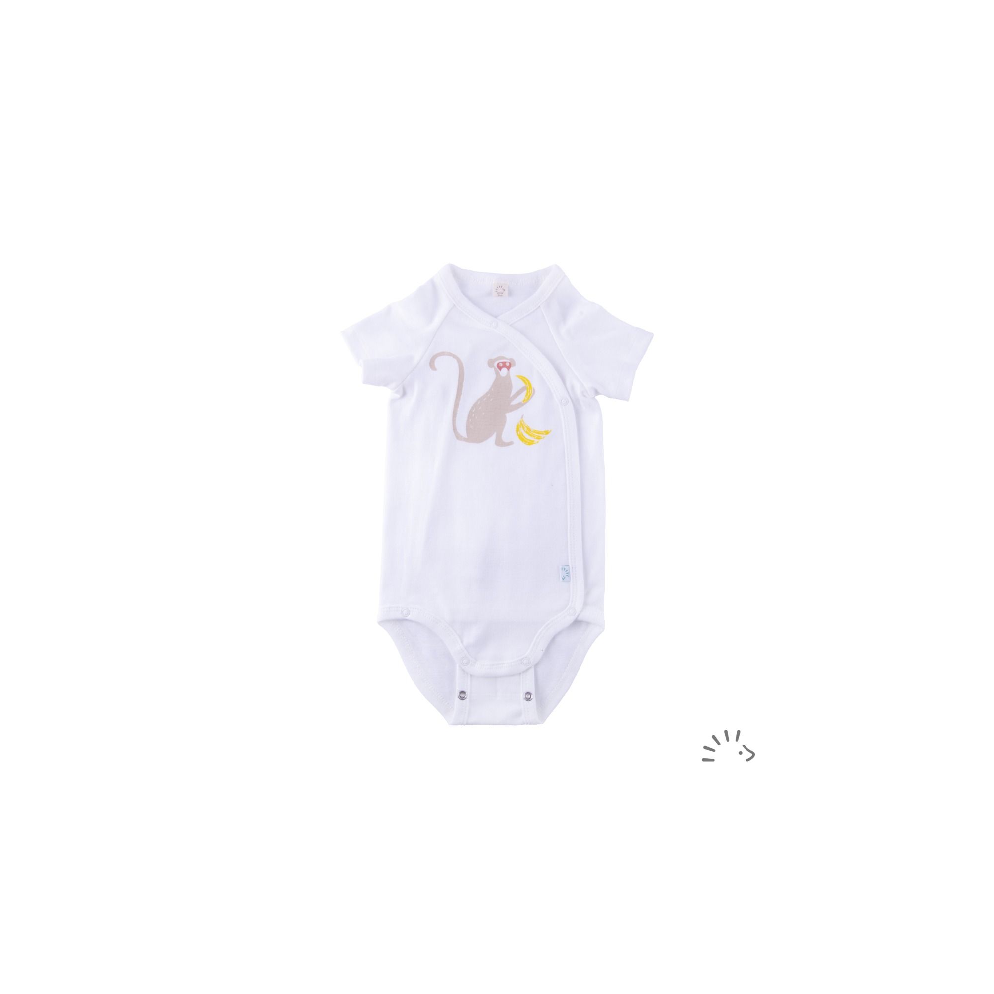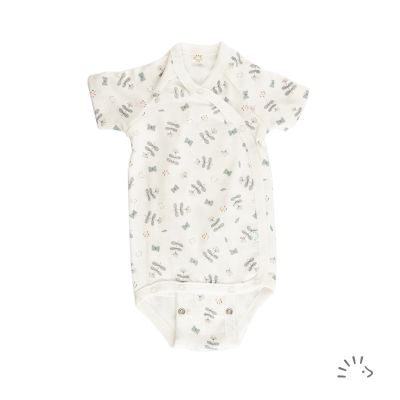 The bodysuit in wrap over style is made of organic cotton. The snap fasteners on the side allow an easy changing, because the body does not need to be pulled over the head. With snap fasteners in the crotch it is adjustable in size and therefore grows with your child. Also well suitable even for bulky cloth nappies. The GOTS certified fine rib material provides a comfortable fit.