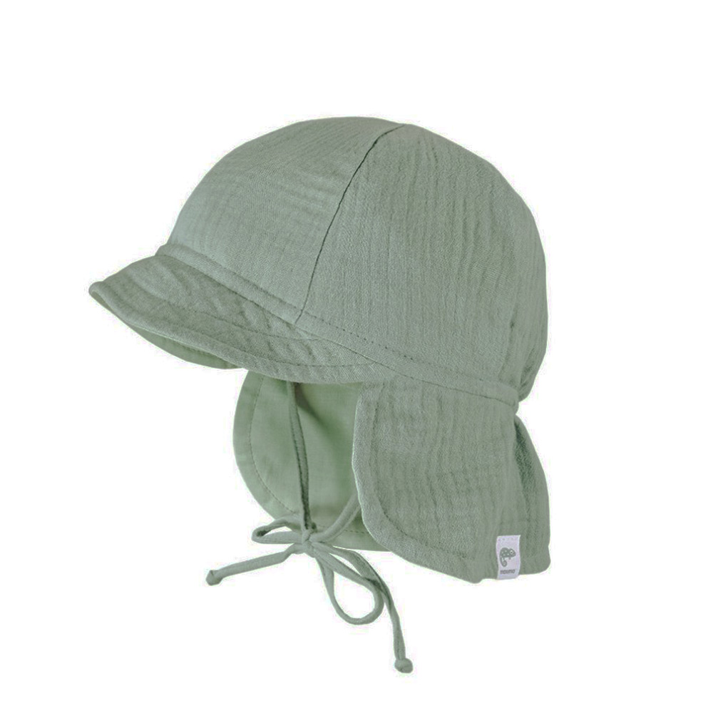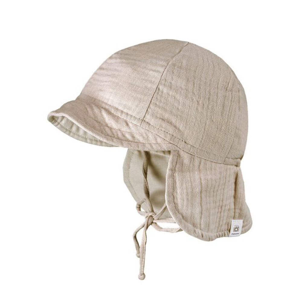 Leichte Baby-Schirmmütze aus weichem Musselin für warme Tage.