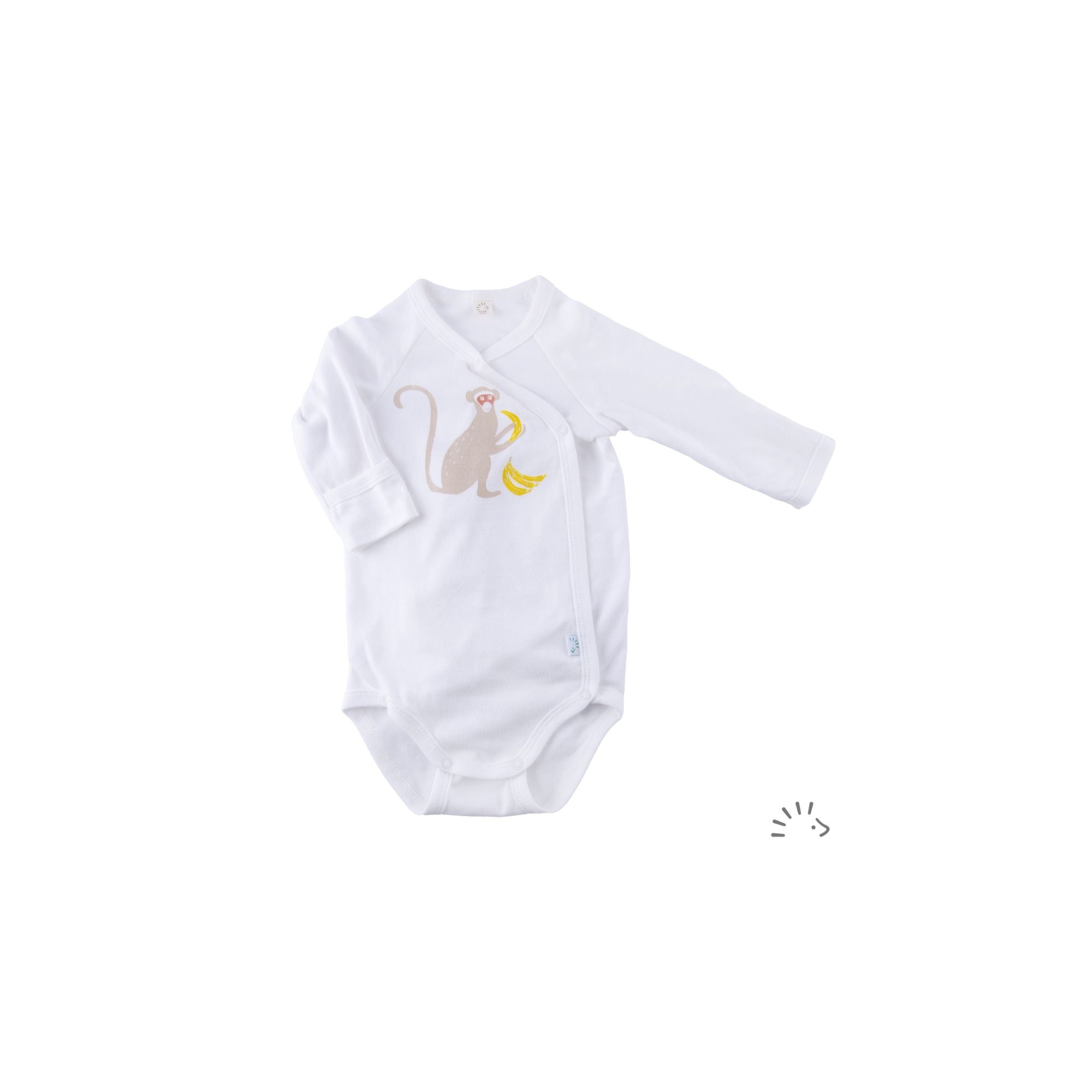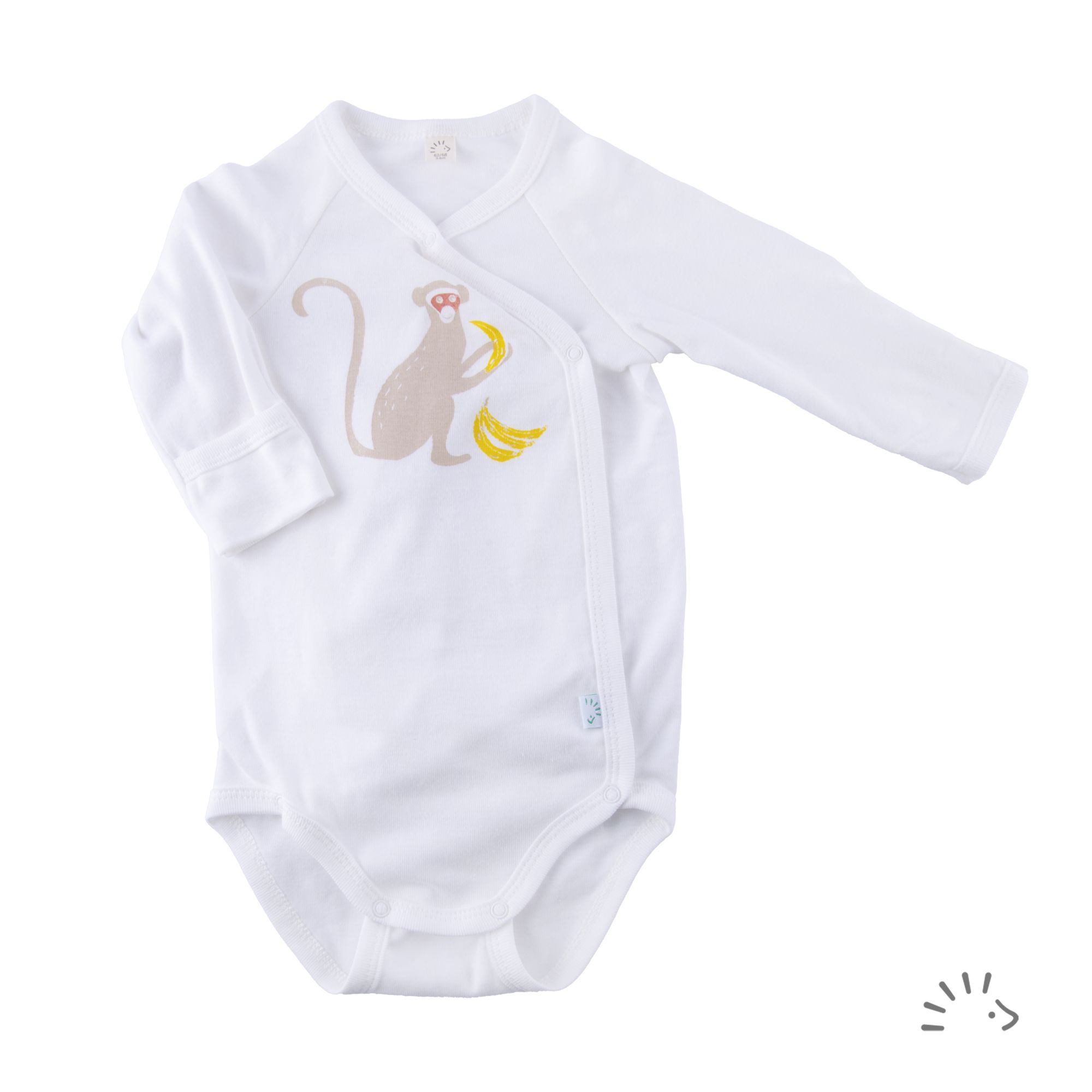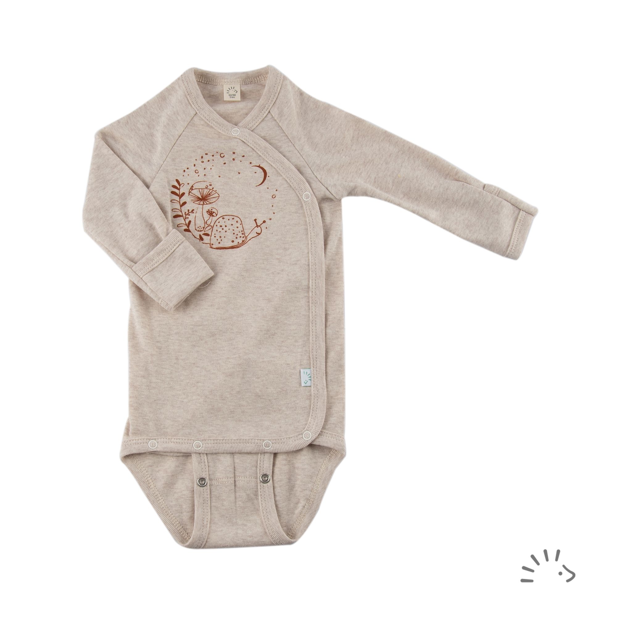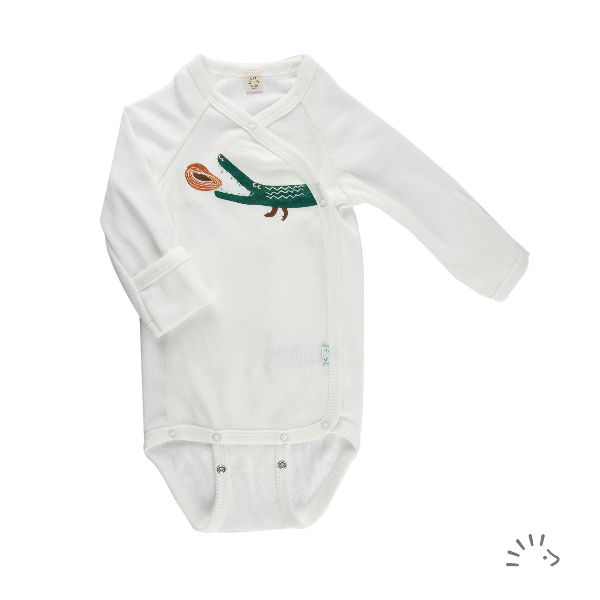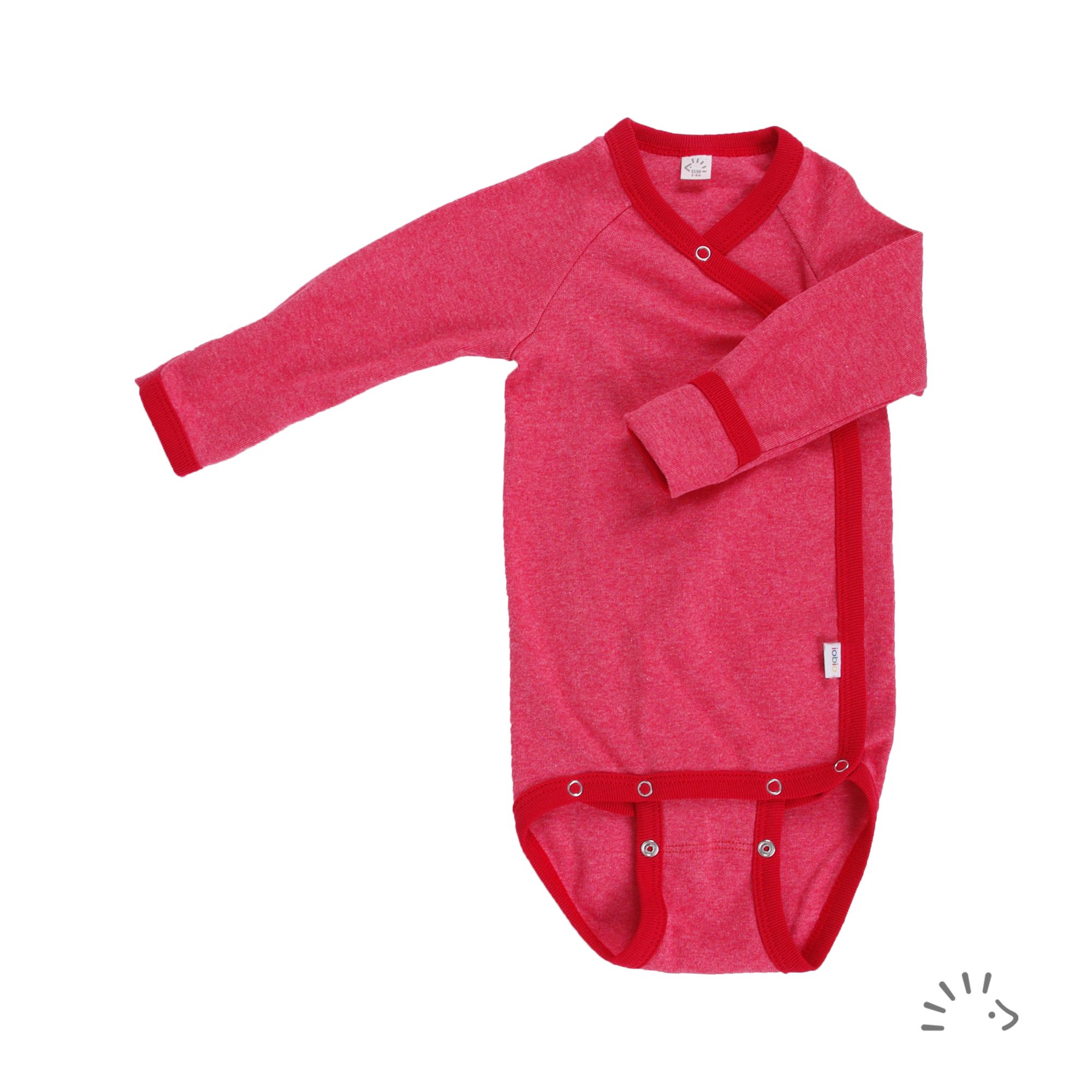Die Ärmel des Wickelbodys lassen sich als Kratzschutz, oder zum Wärmen umstülpen. Seitlich angebrachte Druckknöpfe ermöglichen ein bequemes An- und Ausziehen, da dieser Body nicht über den Kopf gezogen werden muss. Durch die größenverstellbaren Druckknöpfe im Schritt ist der Body mitwachsend und optimal für Stoffwindelpopos geeignet. Das GOTS zertifizierte Feinrippmaterial bietet einen angenehmen Tragekomfort.