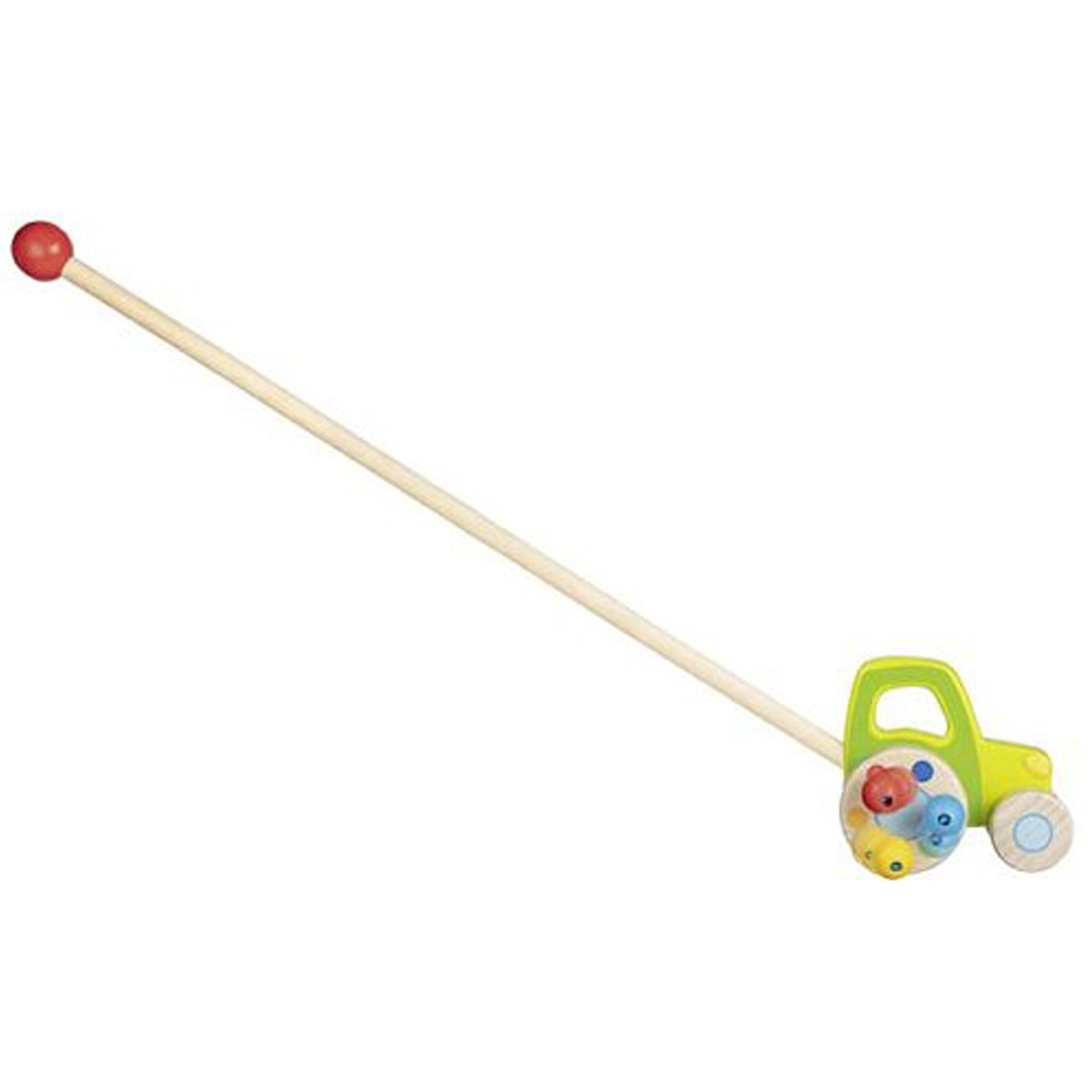 Der Schiebetraktor mit den Klackerperlen. Ein Holzspielzeug mit hohem Spiel- und Bewegungsanreiz. Qualität - Design - Ökologie im goki Dreiklang.