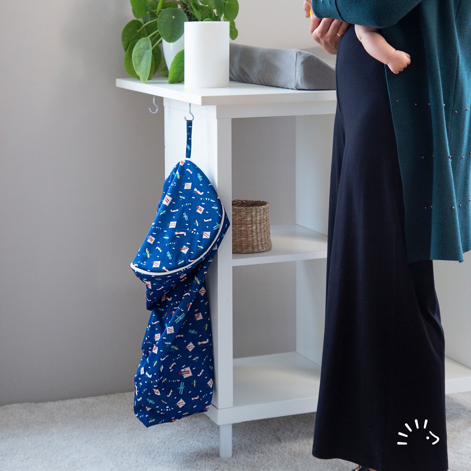 Der große Wetbag aus zertifiziertem PU Stoff eignet sich wunderbar zum Aufbewahren von benützten Stoffwindeln! Einfach an der Lasche in Reichweite vom Wickelort aufhängen - geruchsfrei sind die Windeln bis zum nächsten Waschgang verstaut.