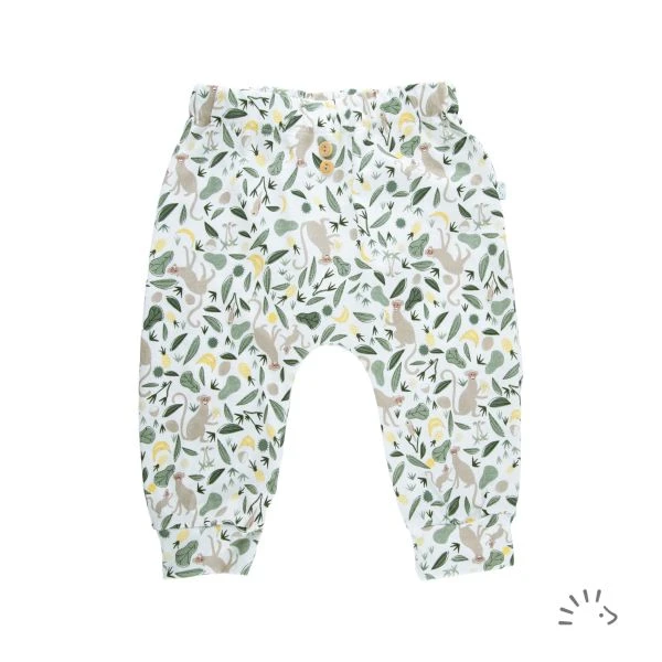 Die Hose ist aus luftig, leichtem Baumwoll-Single Jersey gefertigt. Der sommerliche Stoff mit seiner hohen Atmungsaktivität bietet maximalen Tragekomfort. Mit weichem Bauchgummi für optimalen Halt. Durch eine kleine Öffnung lässt sich der Gummi einfach verkleinern. Der Schnitt bieten viel Bewegungsfreiheit und somit ist die Hose auch beim Tragen von Stoffwindeln geeignet.