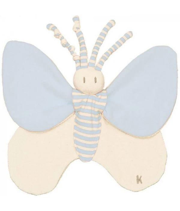 Der Schmertterling wurde speziell für frühgeborene Babys entwickelt und verfügt über einen austauschbaren Flügel, der durch eine kleine Öffnung in den Schmetterlingskörper eingefädelt wird. Dieser soll den Geruch der Eltern übertragen und ein Gefühl von Nähe und Geborgenheit vermittlen. Die Füllung im Kopf sitzt sicher in einer zusätzlichen Umhüllung. Durch die weichen Greifhörnchen kann das Baby seine Greifreflexe aktivieren, ohne jegliche Gefahr.