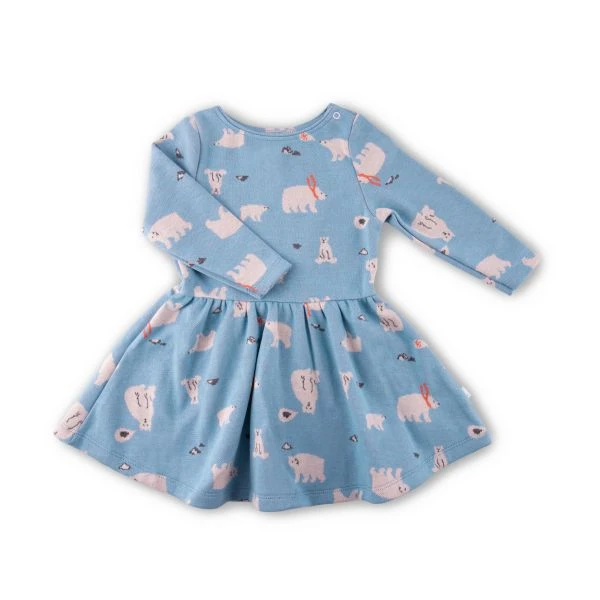 Bezauberndes Kinderkleid aus hochwertigem Jacquard-Strick – gefertigt aus 100 % kbA-Bio-Baumwolle (GOTS-zertifiziert). Mit seinem entzückenden Eisbär-Motiv verbindet es verspielten Stil mit nachhaltiger Qualität.