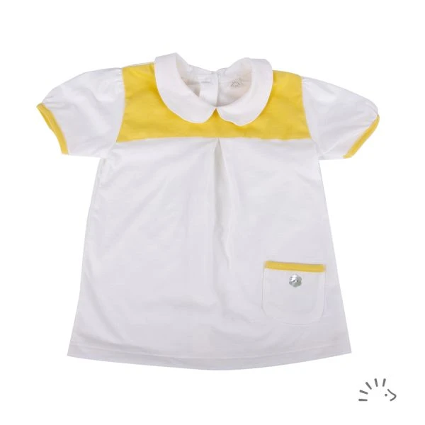 Unsere kurzarm Bluse ist aus zertifiziertem Baumwoll-Single Jersey gefertigt- ein elegantes Teil für die warme Jahreszeit. Der Bubikragen und die Kellerfalte am Vorderteil sorgen für mädchenhaften Charme. Auf der Rückseite lässt sich die Bluse durch eine mittige Druckknopfleiste komplett öffnen – das garantiert einfaches und schnelles Umziehen. Das atmungsaktive, zarte Single Jersey-Material ist besonders hautfreundlich und formstabil.