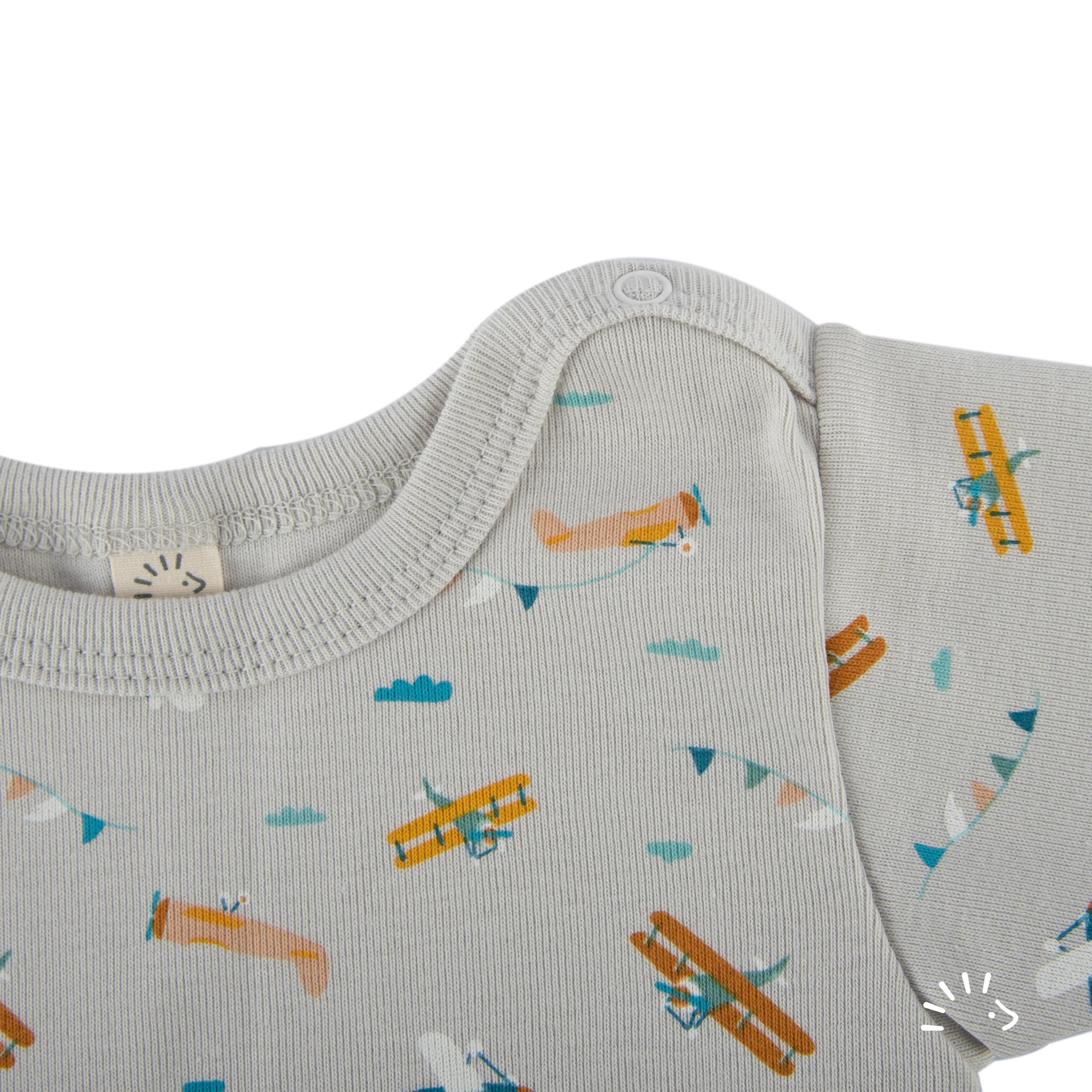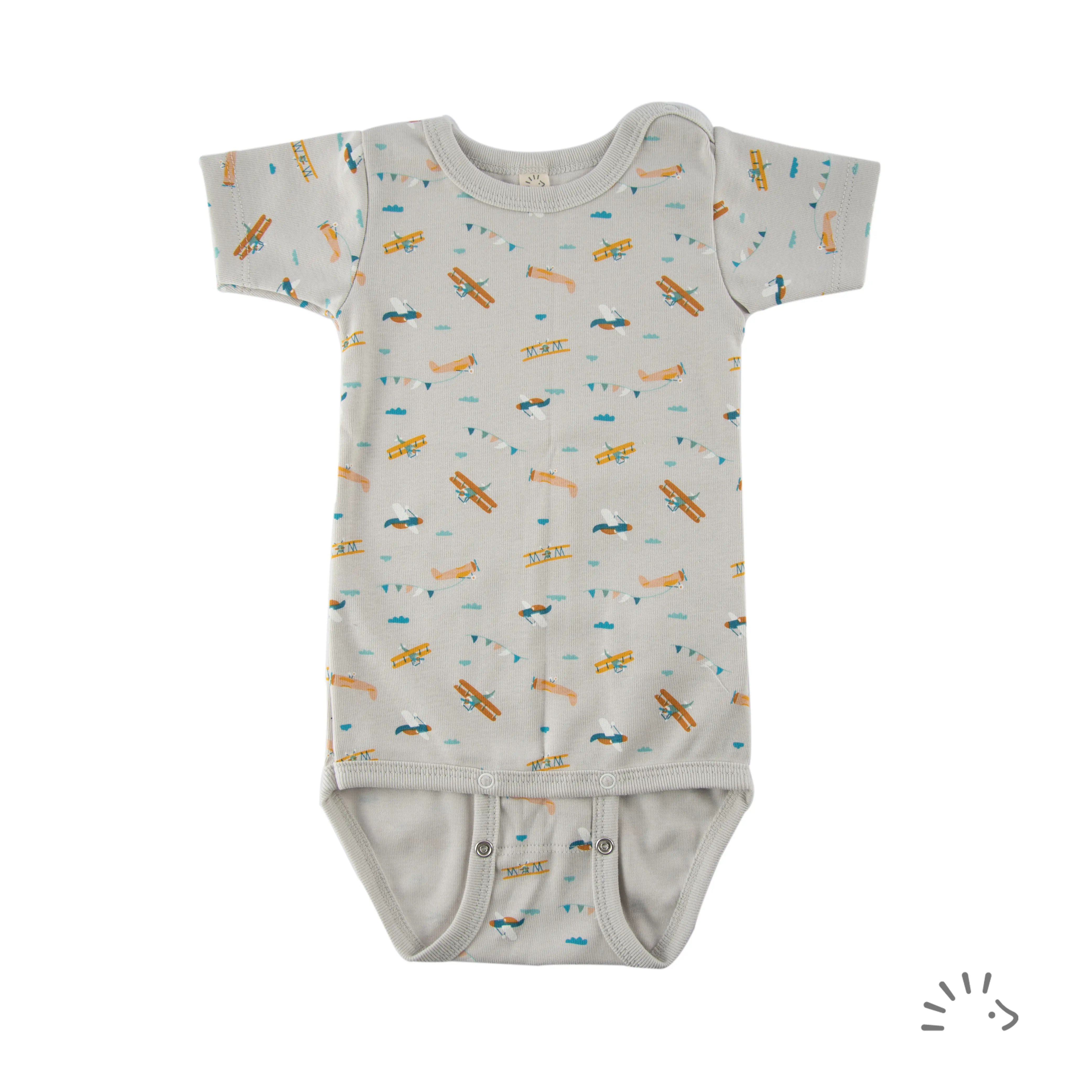 Der Kurzarmbody für jede Jahreszeit: im Sommer als praktisches Top, im Winter als Unterbekleidung. Durch die größenverstellbaren Druckknöpfe im Schritt ist der Body mitwachsend und optimal für Stoffwindelpopos geeignet. Das zertifizierte Feinrippmaterial bietet einen angenehmen Tragekomfort.