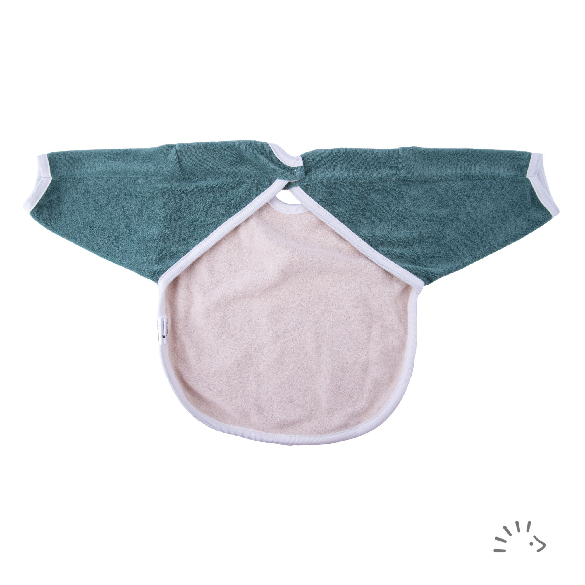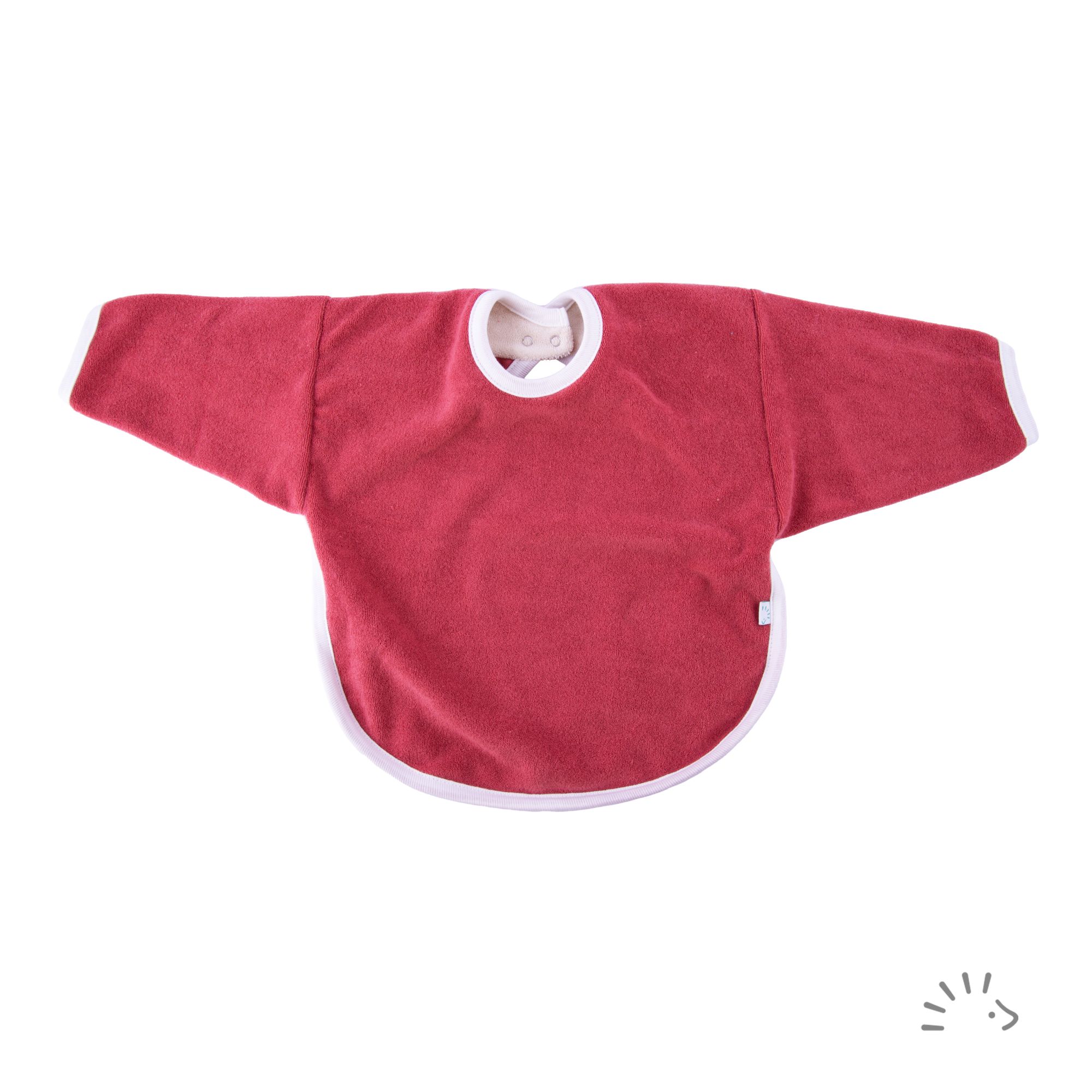 Das doppellagige Lätzchen aus Baumwollfrottee ist aufgrund der langen Ärmel die ideale Wahl zum Essen lernen. Mittels Druckknopf kann das Lätzchen geschlossen werden, ein weiterer Druckknopf am Halsausschnitt ermöglicht die Größenverstellung.