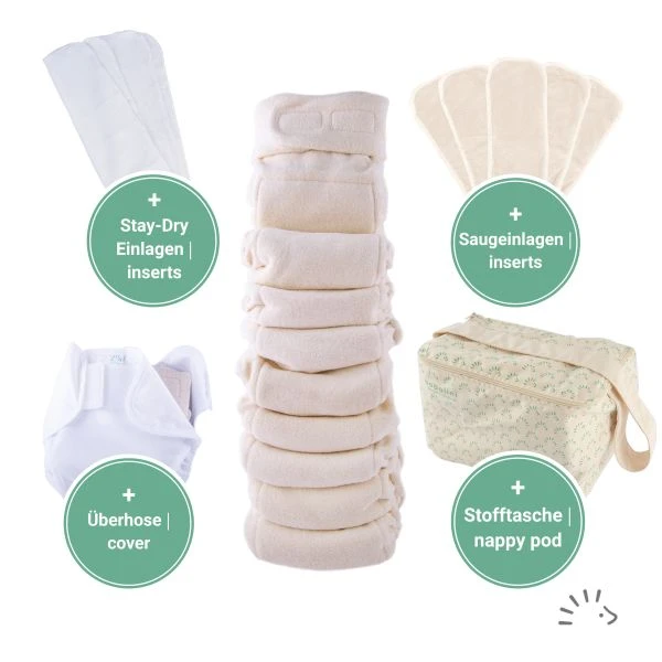 Bitte waschen Sie die Windeln vor dem ersten Gebrauch 1-3 Mal um die Saugkraft zu aktivieren!