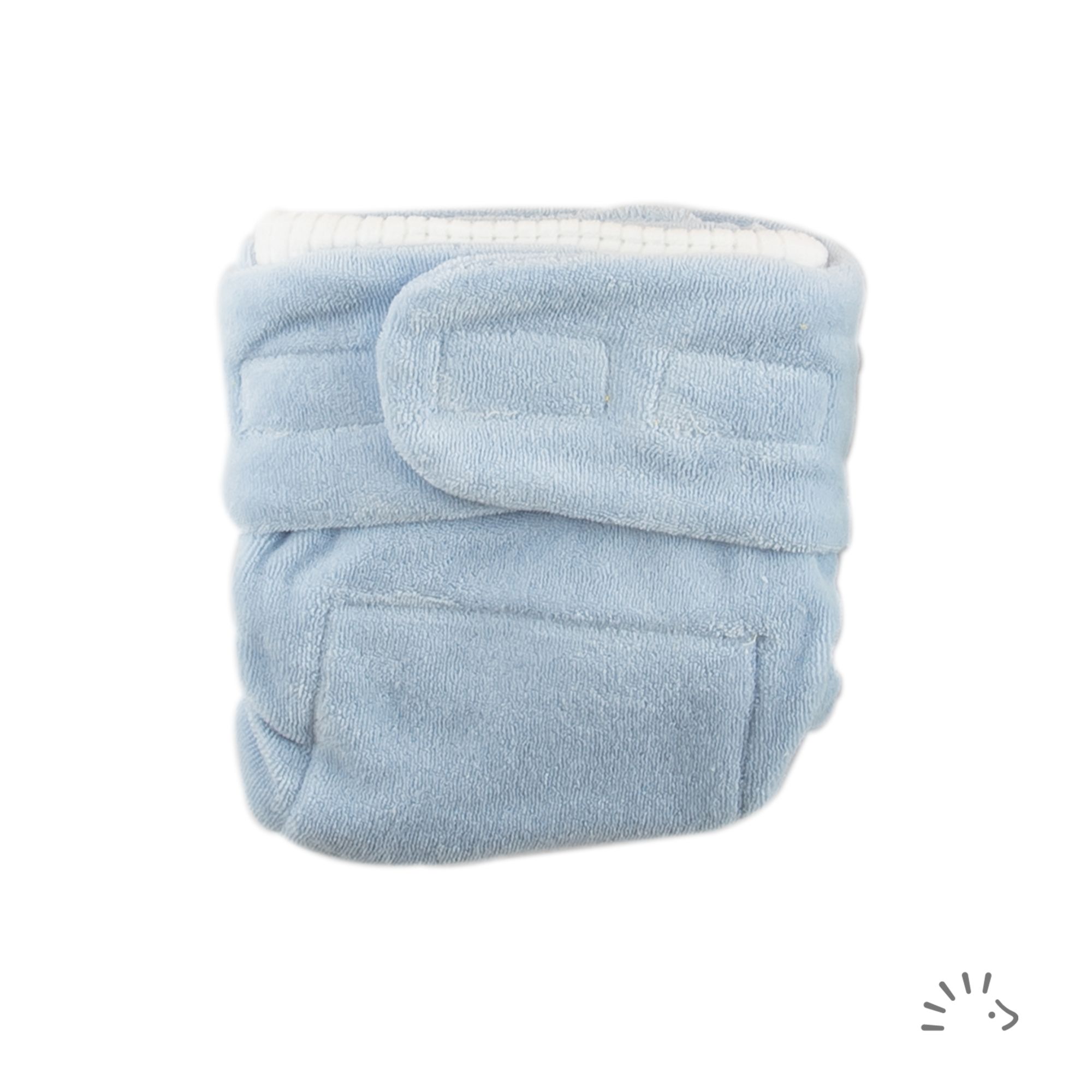 • Die PopoWrap ist eine PU (Polyurethan) beschichtete Überhose mit doppeltem Beinbündchen. Sie wird mit Klettverschluss geschlossen und kann über jede beliebige Saugwindel gewickelt werden.