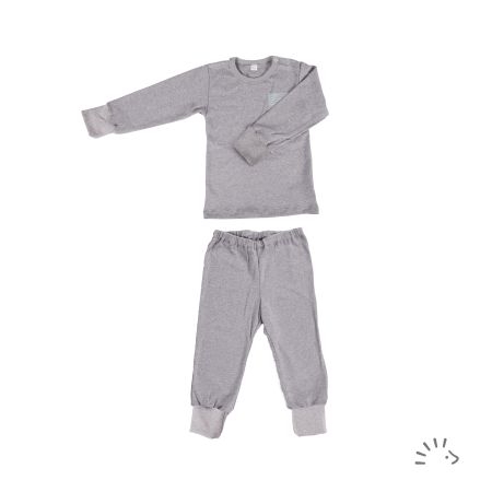 Der Langarm Pyjama ist optimal für das ganze Jahr. Die zertifizierte Baumwolle sorgt für ein angenehmes Tragegefühl. Zwei seitlich angebrachte Druckknöpfe am Hals ermöglichen ein leichteres An- und Ausziehen. Der eingezogene Hosengummi am Bauch sorgt für einen optimalen Halt. Ein extra breiter Elasticbund am Beinende sowie an den Ärmeln gibt optimalen Halt.