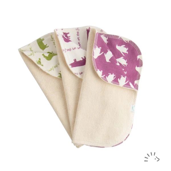 Die waschbaren doppellagigen Reinigungstücher aus GOTS-zertifizierter Baumwolle sind in der praktischen 3-Stück Packung erhältlich. Saugstarker, zertifizierter bio Frottee auf der einen Seite und feiner Jersey auf der anderen.