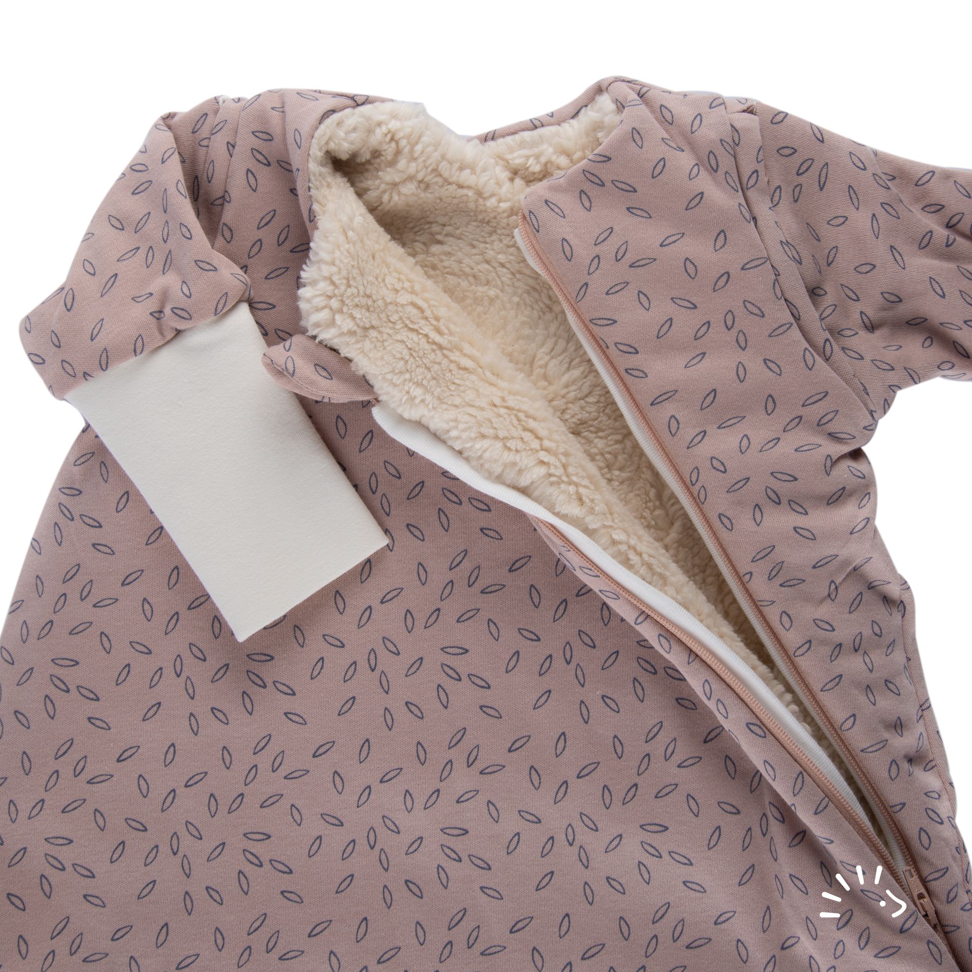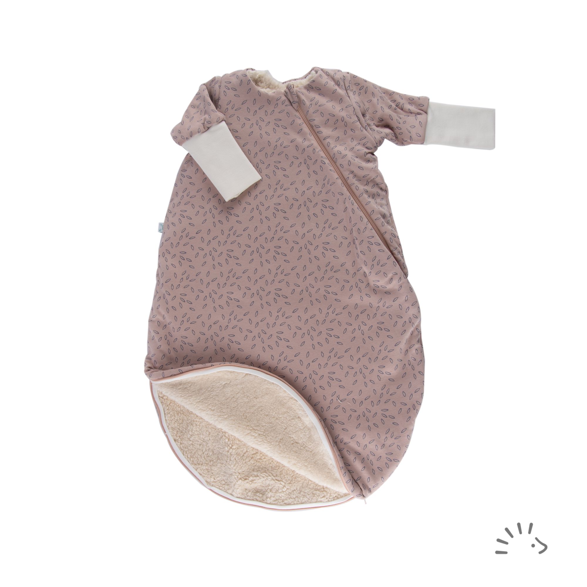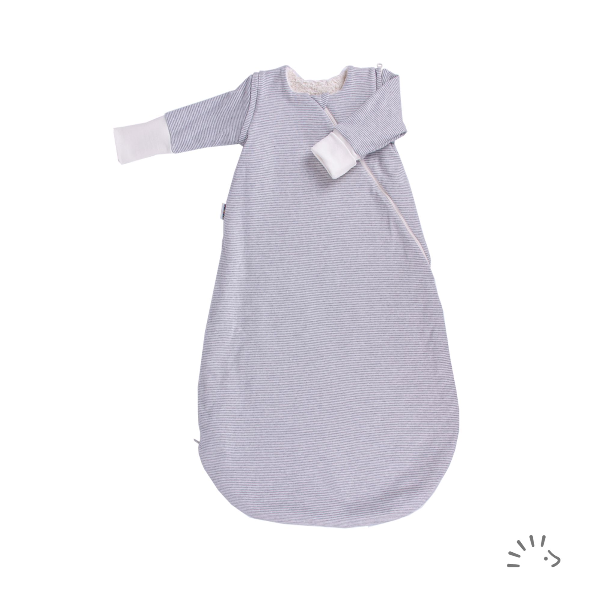Der Schlafsack VARIO aus zertifizierter Baumwolle bietet deinem Baby eine angenehme Schlafumgebung. Das weiche Interlock-Material ist mit Teddyplüsch gefüttert. Die doppellagigen Interlock Ärmel können jederzeit abgezipt werden, sodass der Schlafsack auch für wärmere Tage ideal ist. Die großzügig geschnittene Form bietet deinem Kind genügend Strampelfreiheit. Ein extra langer Zwei-Wege-Zip ermöglicht einfaches An- und Ausziehen, vereinfacht so auch das Wickeln. Zusätzliche Stofflagen über und unter dem Reißverschluss verhindern ein Drücken des Reißverschlusses. Der Elasticbund an den Ärmeln sorgt für einen optimalen Halt und lässt den Schlafsack VARIO in der Größe mitwachsen.
