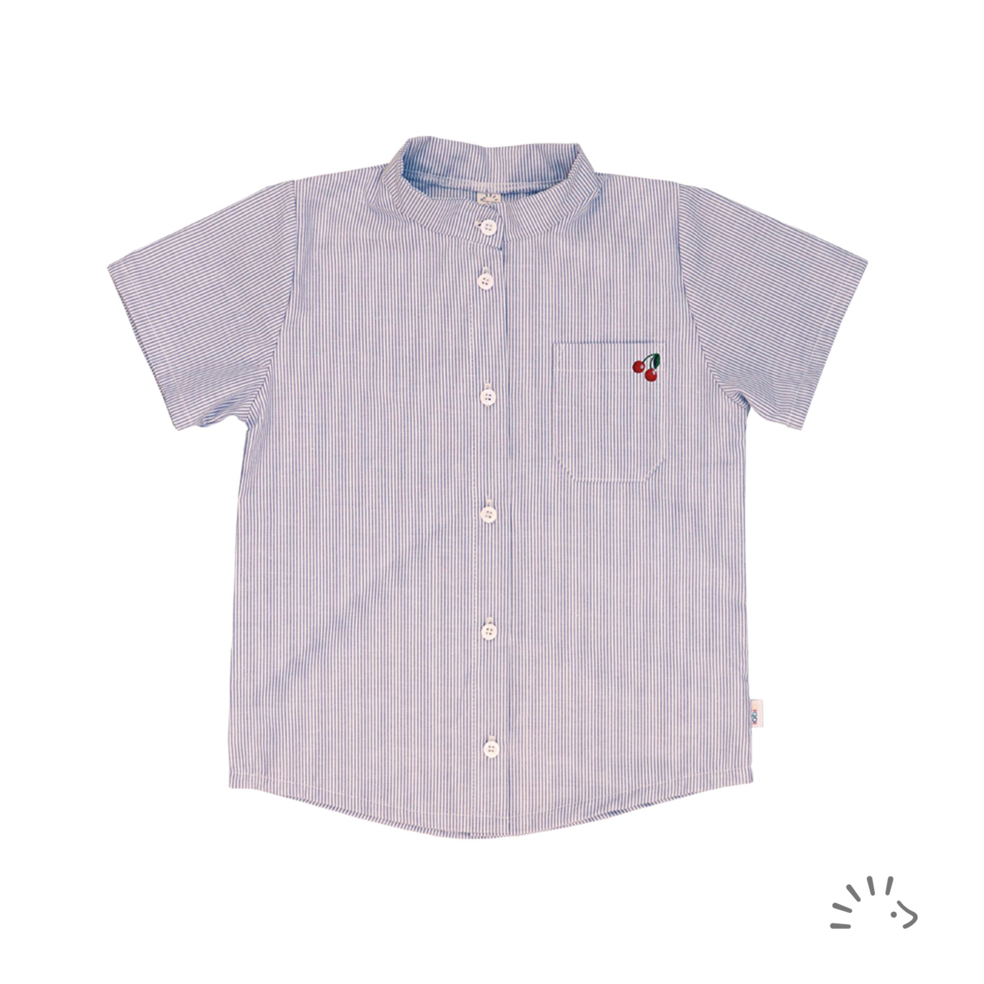 Das Kurzarmshirt ist ein Multitalent: angenehme Baumwoll-Popeline als cooles Sommerhemd! Straighter Schnitt, kurze Ärmel und Stehkragen. Die Knopfleiste ist mit echten Perlmuttknöpfen versehen. Aufgesetzte Tasche mit sommerlichem Stickdetail: Kirsche.