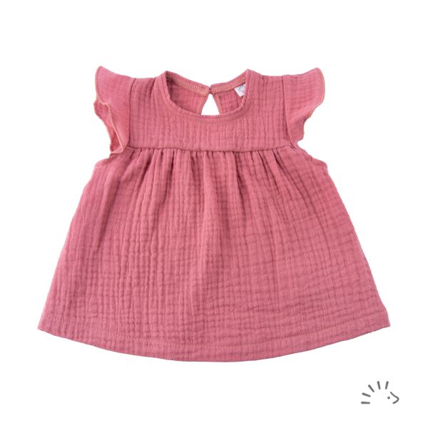 Das Top aus luftigem Baumwoll-Musselin ist ein zartes Babyshirt für die heißen Tage. Der hautsympathische Stoff bietet durch die spezielle Oberflächenstruktur besonders hohen Tragekomfort. Mit zarten Schulterrüschen und gerafftem Vorderteil. Schlingenverschluss mit echtem Kokosnussknopf am Halsloch.
