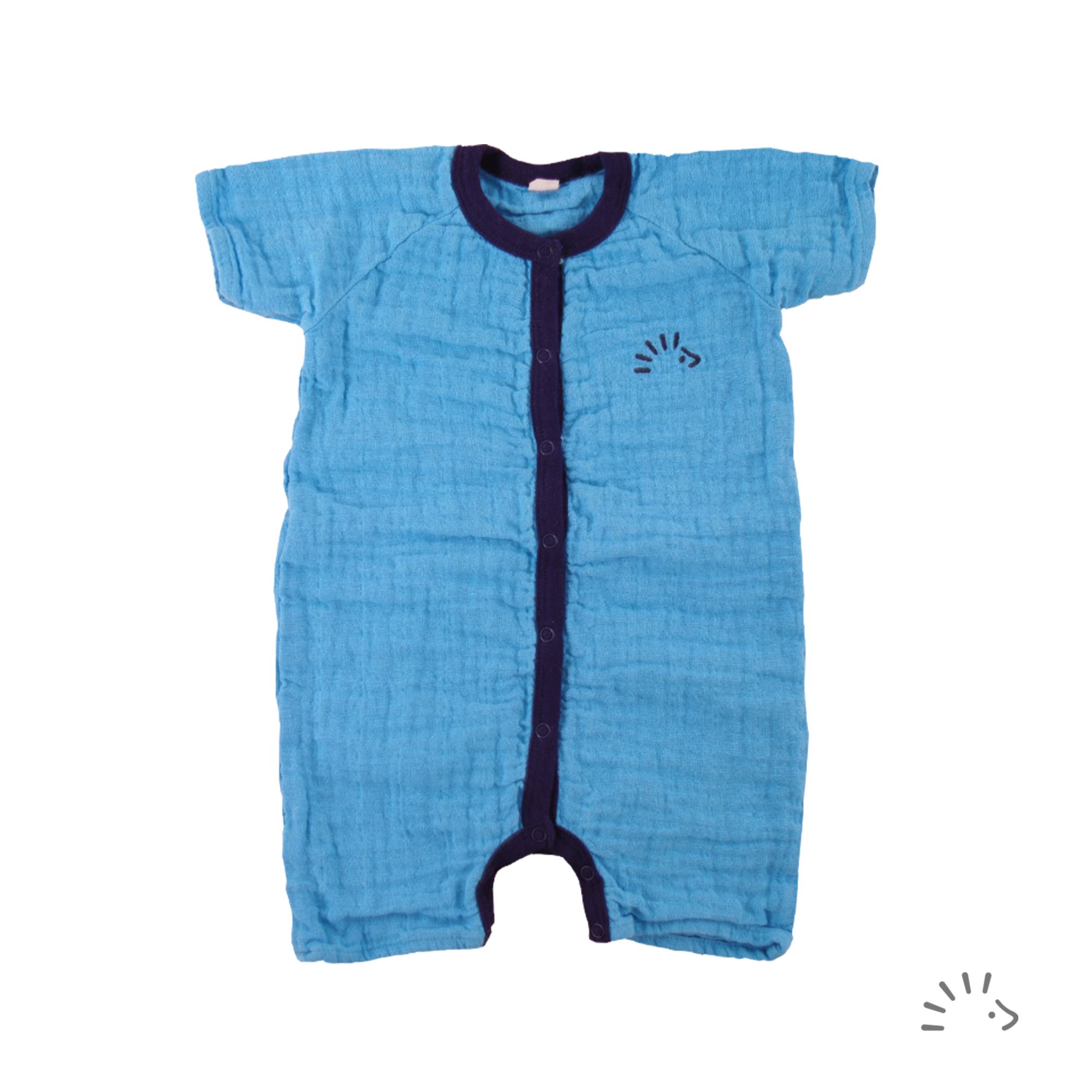 Der Spieler ist aus sommerlichem, zertifizierten Mullstoff gefertigt und damit auch für die richtig heißen Tage gedacht. Der Knittereffekt entsteht durch die spezielle Stoffstruktur. Der simple Look dieses Teiles macht ihn zum Lieblings-Einteiler im Sommer für die Kleinsten. Die verstärkten Druckknöpfe an der Vorderen Mitte und im Schritt ermöglichen ein schnelles An- und Ausziehen - praktisch beim Wickeln!