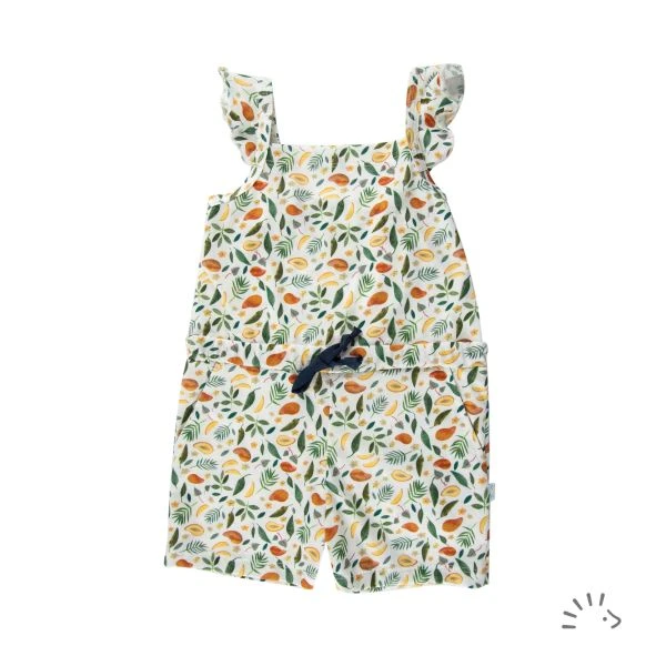 Der Spieler ist aus leichtem Baumwolljersey gefertigt und idel für die heißen Tage! Das luftige Modell hat durch Knöpfe verstellbare Träger, die hinter dem Körper überkreuzt werden können. Mit verspielter Rüsche an den Trägern, Baumwollband in der Taille und echten Seitentaschen im Hosenteil zum Verstauen von wichtigen Kleinigkeiten. Mit echten Kokosnussknöpfen.