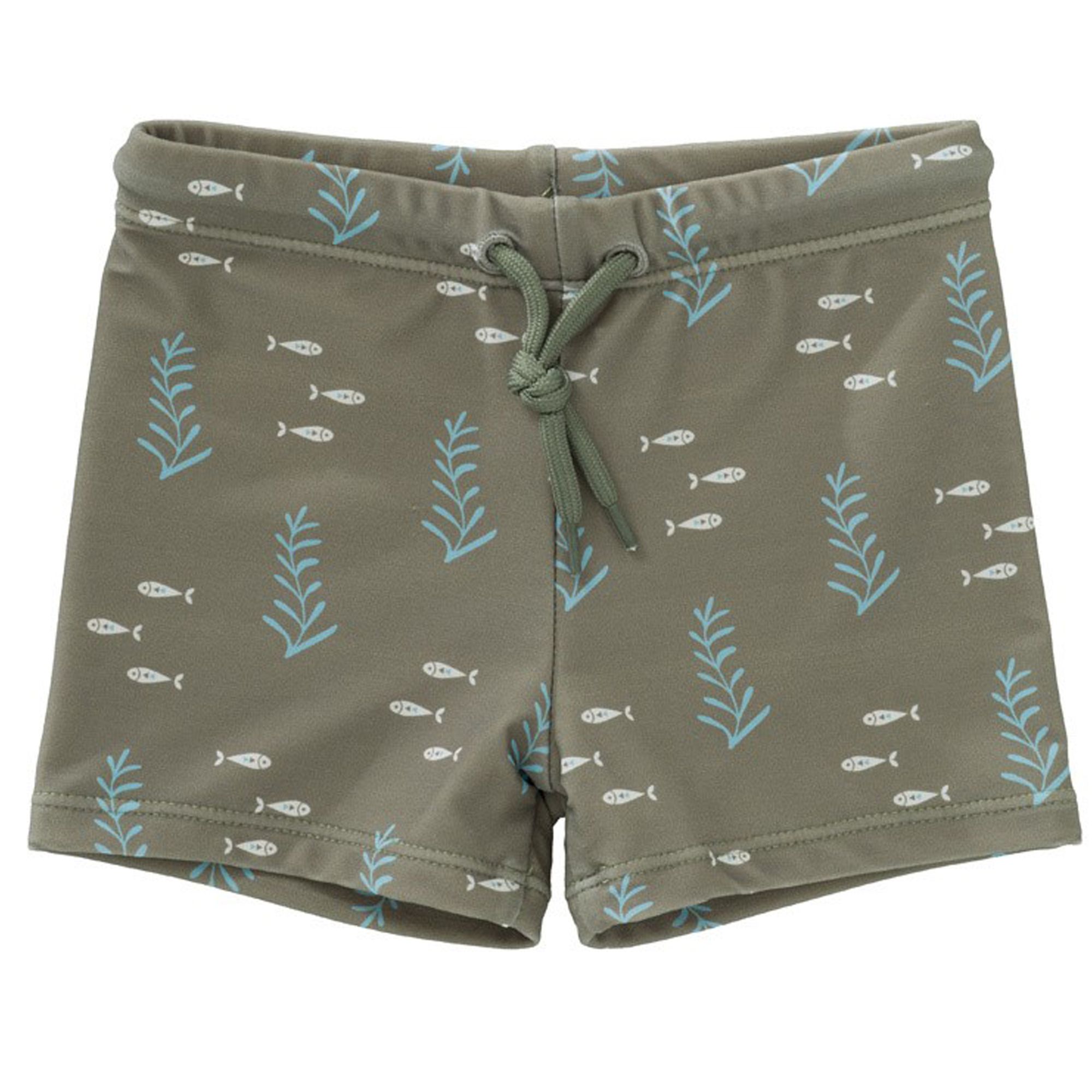 Die Badeshorts von Fresk, sind gefertigt aus recyceltem Nylon und haben einen Lichtschutzfaktor von 50+. Sie sitzen eng und können mit dem verstellbaren Gummibund enger gestellt werden für besseren Halt. Die Badeshorts haben ein schönes Skandinavisches Design und sind fair Hergestellt.