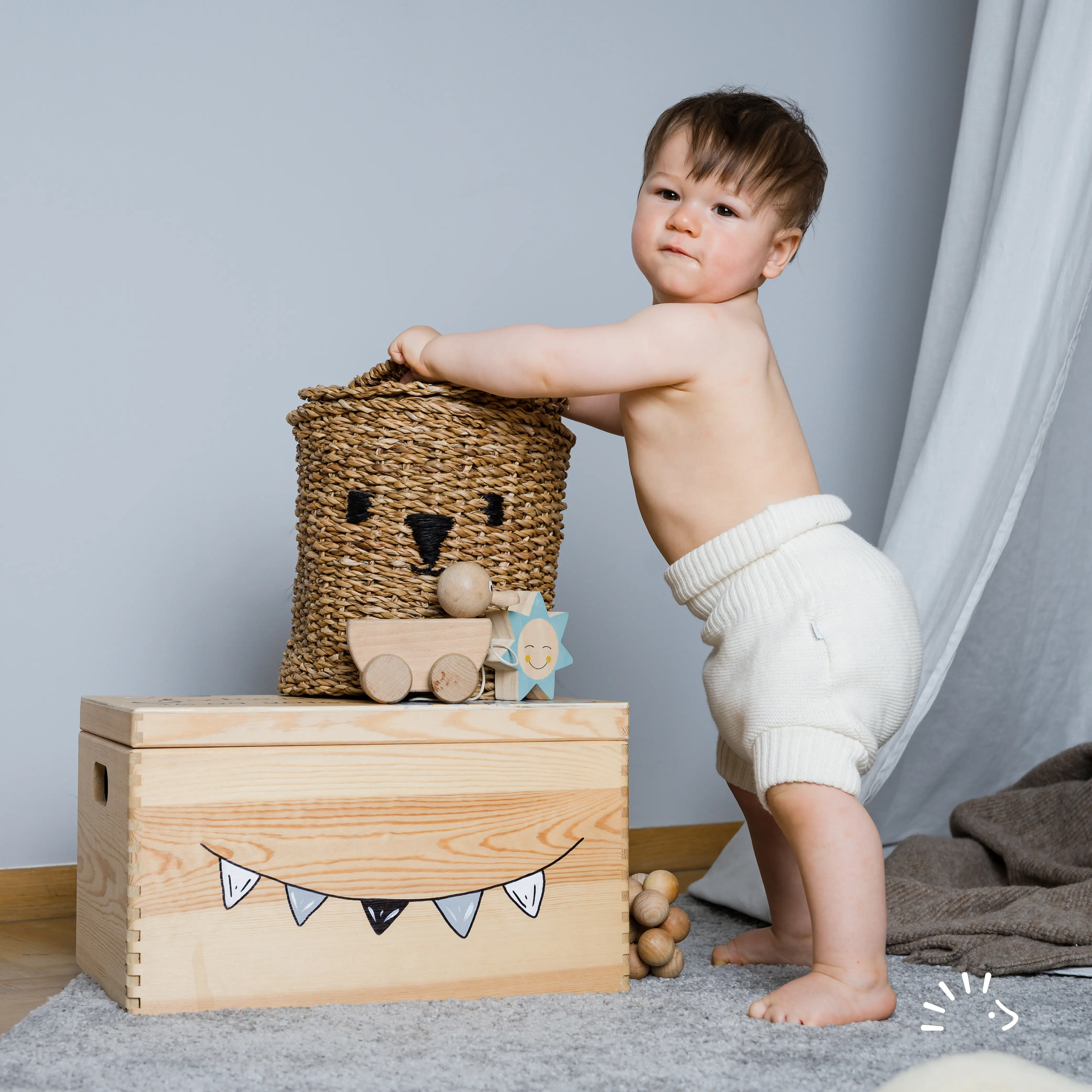Die WoolPant ist eine doppelt gestrickte Überhose aus kbT Wolle. Dieser natürliche ond besonders atmungsaktive Nässeschutz kann über jede beliebige Saugwindel gezogen werden.