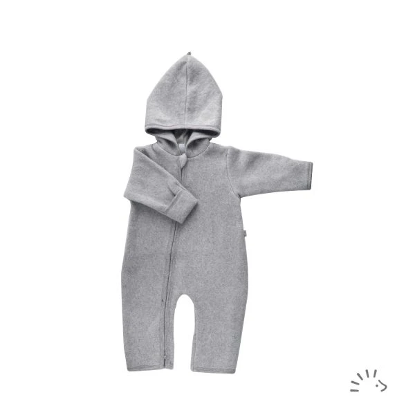 Der Baby Overall Baumwollfleece aus zertifizierter Baumwolle ist ideal für die kalte Jahreszeit und für die Übergangszeit. Mit einem im Vorderteil seitlich verlaufenden Reißverschluss, der bis zu den Beinen verläuft, sodass die Vorderseite komplett "aufklappbar" ist, was ein einfaches An- und Ausziehen auch im Liegen ermöglicht. Die Kapuze ist mit angenehmen Baumwoll-Interlock gefüttert, für einen optimalen Schutz vor der Kälte sorgen Umschläge an den Beinen und Armen.