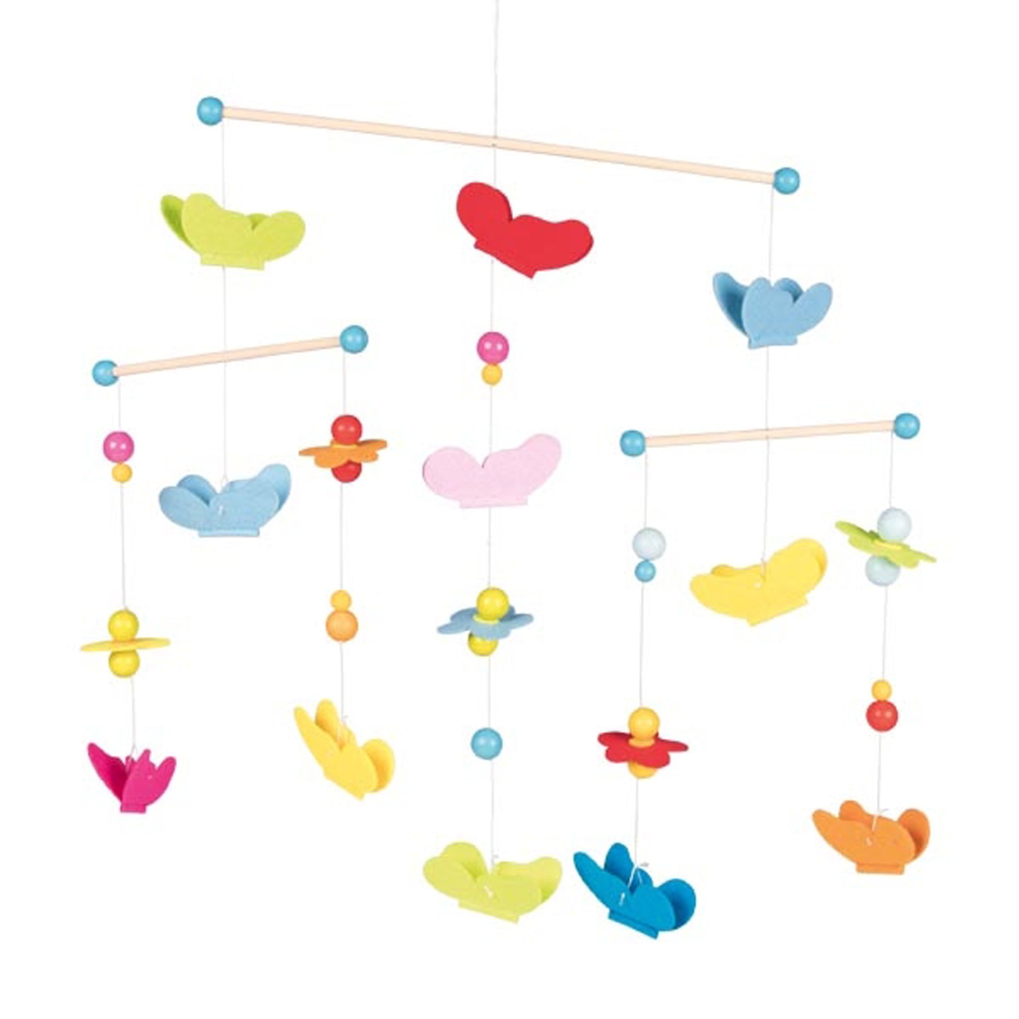 Das verspielte Mobile von goki mit seinen farbenfrohen Schmetterlingen aus Filz bringt Leichtigkeit in jedes Kinderzimmer. Die flatternden Schmetterlinge beruhigen dein Baby, so kann es entspannen und friedvoll in das Reich der Träume einschlummern.