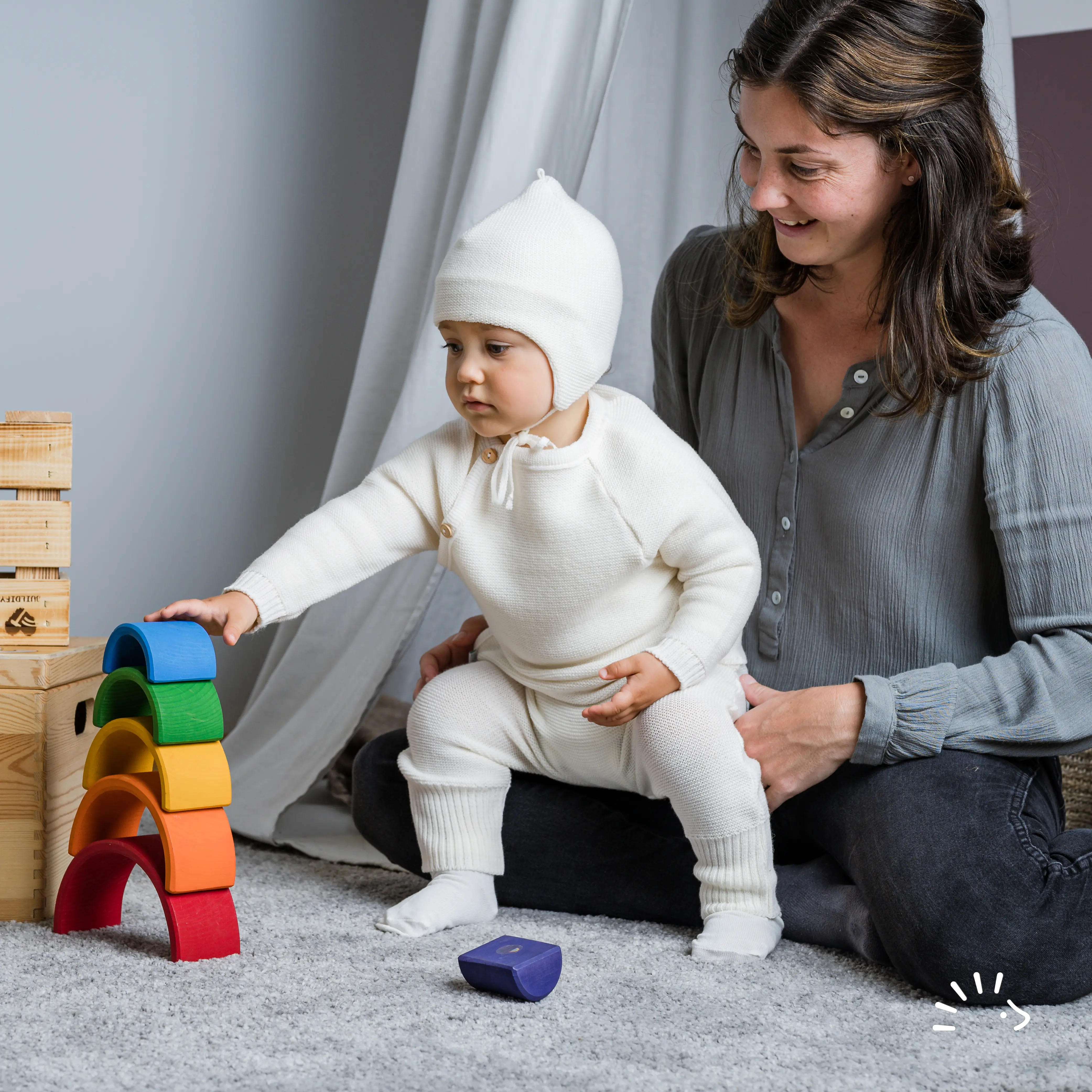 Der menschliche Körper verliert ca. 30% der Körperwärme über den Kopf, daher ist es besonders wichtig, diesen bei Babys und Kleinkindern gut zu schützen. Schafwolle wird seit jeher für ihre natürliche thermoregulierende Wirkung geschätzt.