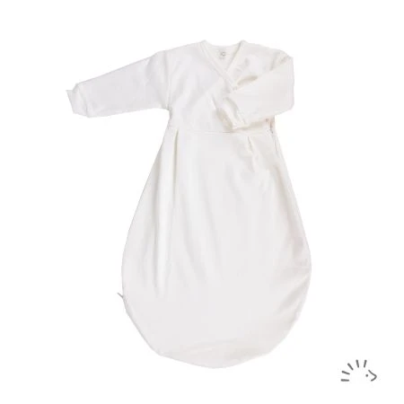 Der Innenschlafsack aus zertifiziertem Baumwoll Interlock kann an wärmeren Tagen als Schlafsack verwendet werden oder an kälteren Tagen als zusätzliche Wärmelage für unsere ärmellosen Schlafsäcke. Der überlappende Brustteil, welcher mit einem Druckknopf innen fixiert werden kann, ermöglicht ein einfaches An- und Ausziehen im Liegen. Der Schlafsack ist im Brustbereich mit einem Baumwollband eingefasst. Die großzügig geschnittene Form bietet Ihrem Kind genügend Strampelfreiheit. Ein extra langer Zwei-Wege-Zip ermöglicht einfaches An- und Ausziehen und vereinfacht so auch das Wickeln. Der Elasticbund an den Ärmeln, sorgen für einen optimalen Halt.