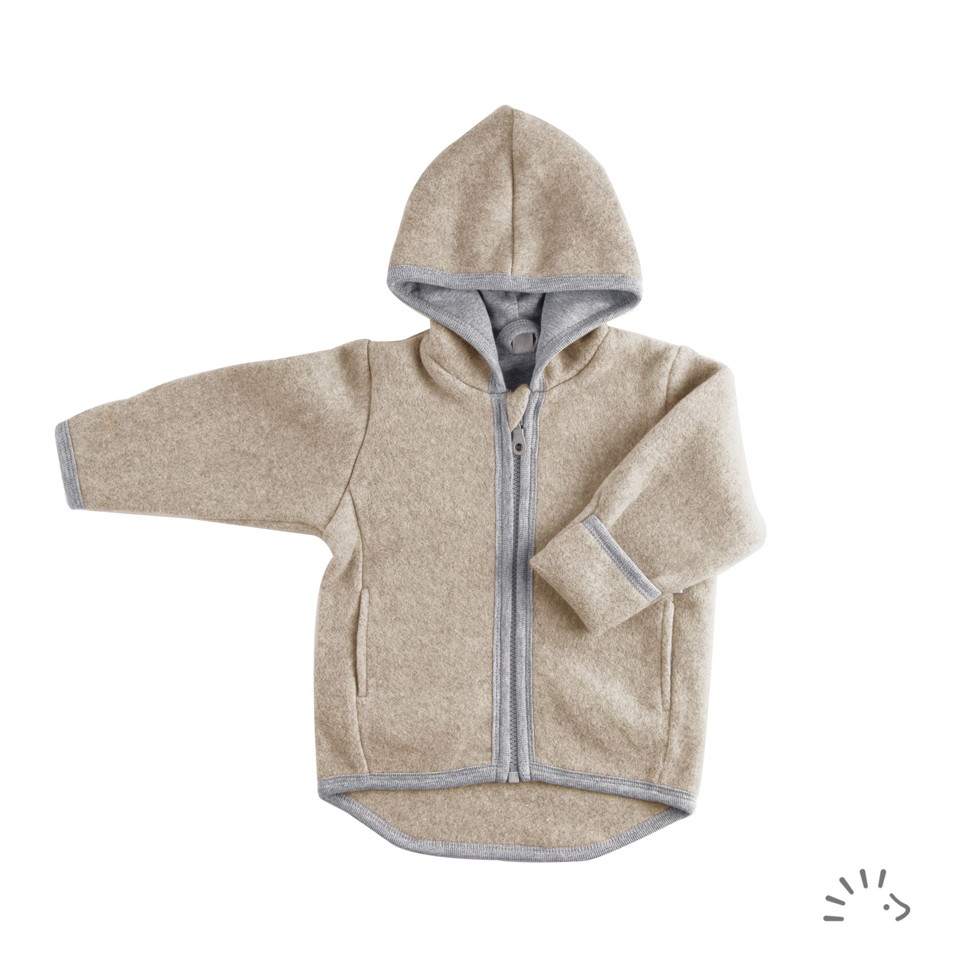 Die Jacke aus zertifiziertem Baumwollfleece ist ideal für die Übergangszeit. Die Kapuze schützt Kopf und Ohren, Taschen ermöglichen das Verstauen von kleinen Schätzen. Für einen optimalen Schutz vor der Kälte für die Kleinsten sorgen Umschläge an den Ärmeln bis zur Größe 86/92 . Die Schutzlasche am Hals ermöglicht sicheres Schließen des Reißverschlusses ohne "zwicken".