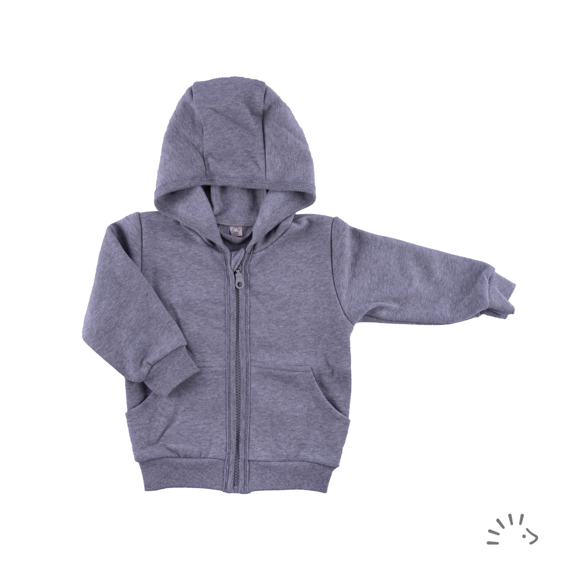 Ein lässiges Teil ist unsere Kapuzenjacke mit aufgesetzten Kängurutaschen. Der auf der Innenseite leicht geraute Bio-Baumwoll-Sweat hält auch an kühlen Abenden warm. Mit dem Reißverschluss fällt das An- und Ausziehen leicht, die Schutzlasche am Hals sorgt für ein sicheres Schließen ohne "zwicken". Praktische Bündchen an den Ärmeln und am unteren Abschluss sorgen dafür, dass nichts verrutscht.