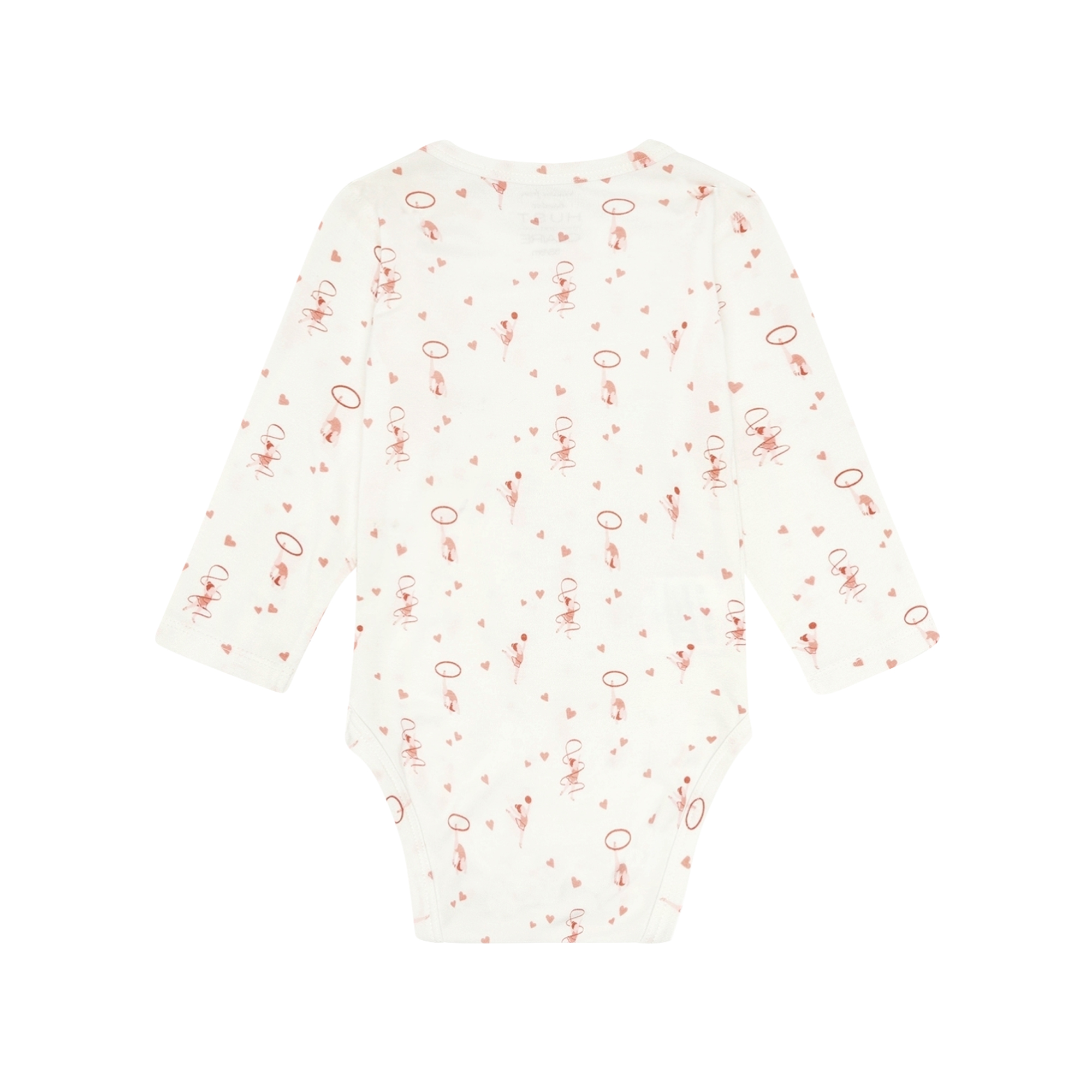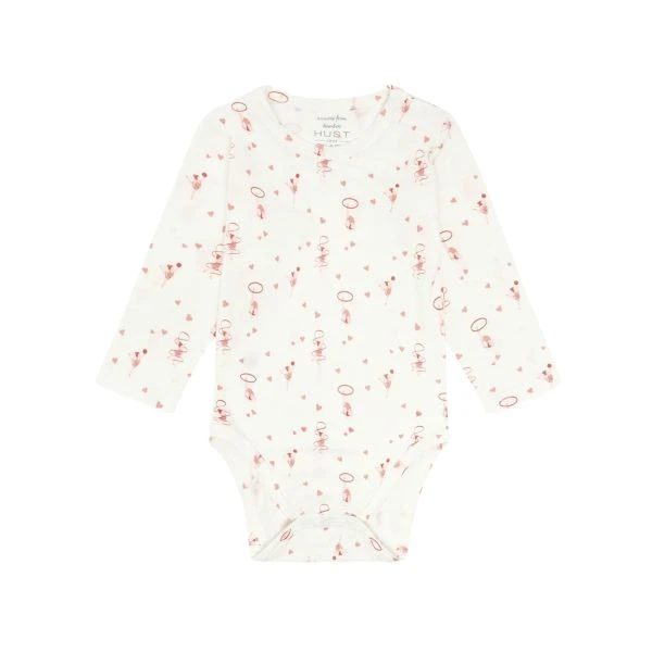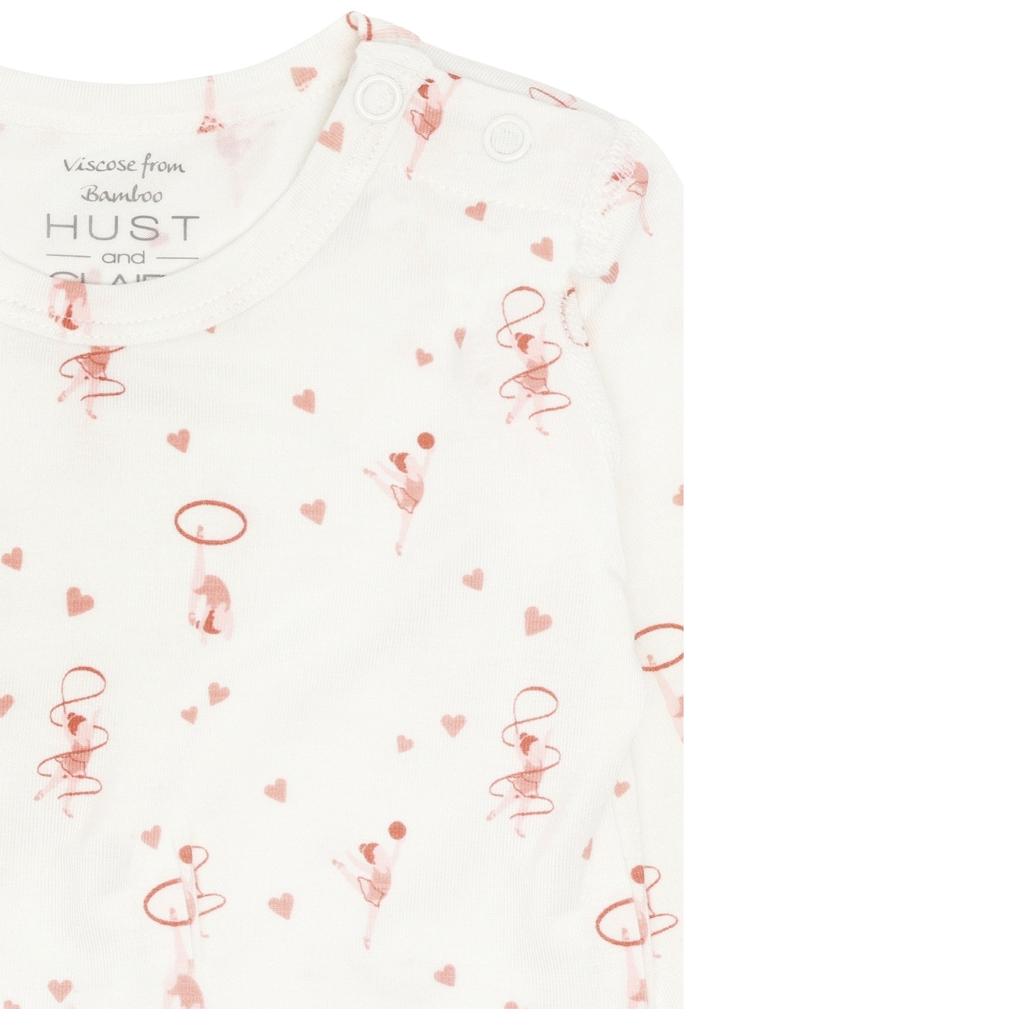 Dieser liebevoll gestaltete Langarm-Body von Hust & Claire begeistert mit einem zauberhaften Herzen-Print und einer süßen Illustration eines kleinen Mädchens beim Turnen. Das verspielte Design verleiht dem Body eine besondere Leichtigkeit und macht ihn zu einem echten Lieblingsstück in der Sommergarderobe.