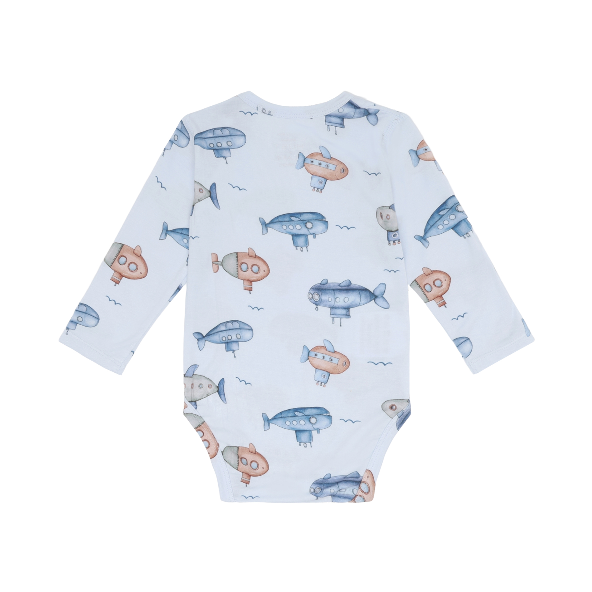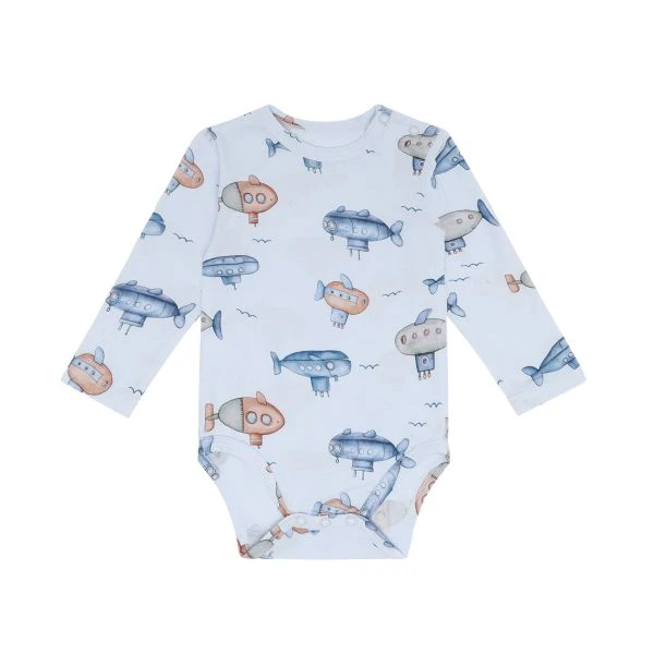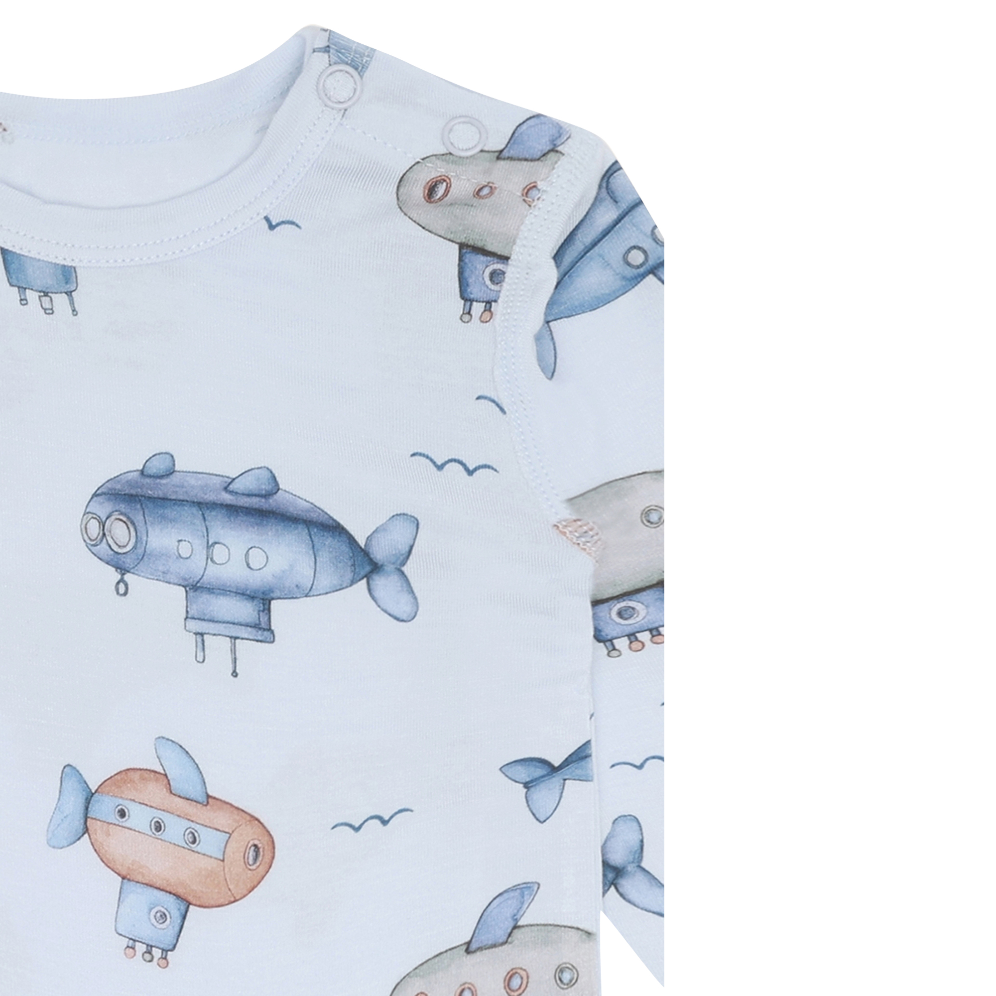 Hellblau und einem verspielten U-Boot Motiv, das kleine Entdecker auf fantasievolle Unterwasserreisen mitnimmt. Ein fröhliches Design, das sofort gute Laune macht.