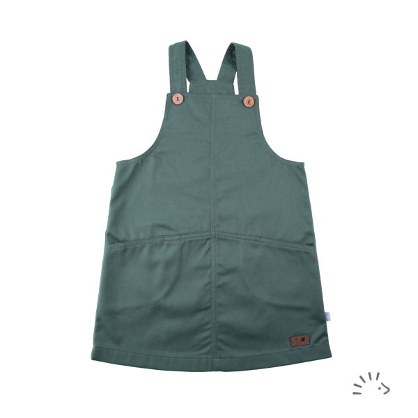 Der Latzkleid ist aus zertifiziertem Baumwolltwill gefertigt. Dieses Kleid ist besonders vielseitig, da es durch das Kombinieren mit unterschiedlichen Tops und Unterteilen optimal an Anlass und Witterung anpassbar ist! Mit bequemem Schnitt, Taschen und verstellbaren Knöpfen an den Trägern. Knöpfe aus echtem Buchsbaumholz.
