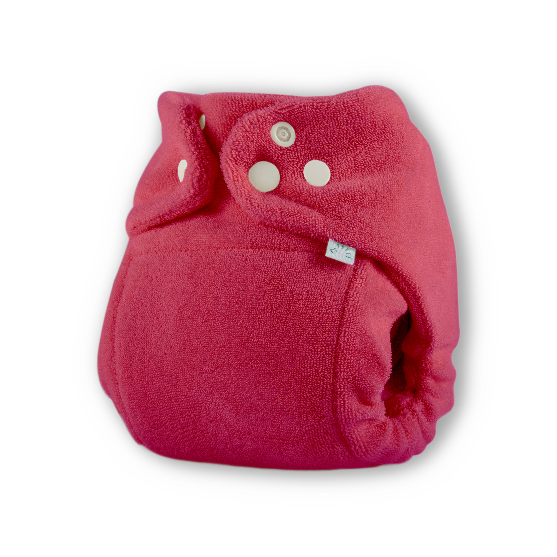 Die MaxiSnap wird mit Druckknöpfen geschlossen. Durch Umschlagen des vorderen Teils kann sie verkleinert werden. Dabei muss sie soweit umgeschlagen werden, bis der Stoff im Schritt gut anliegt.