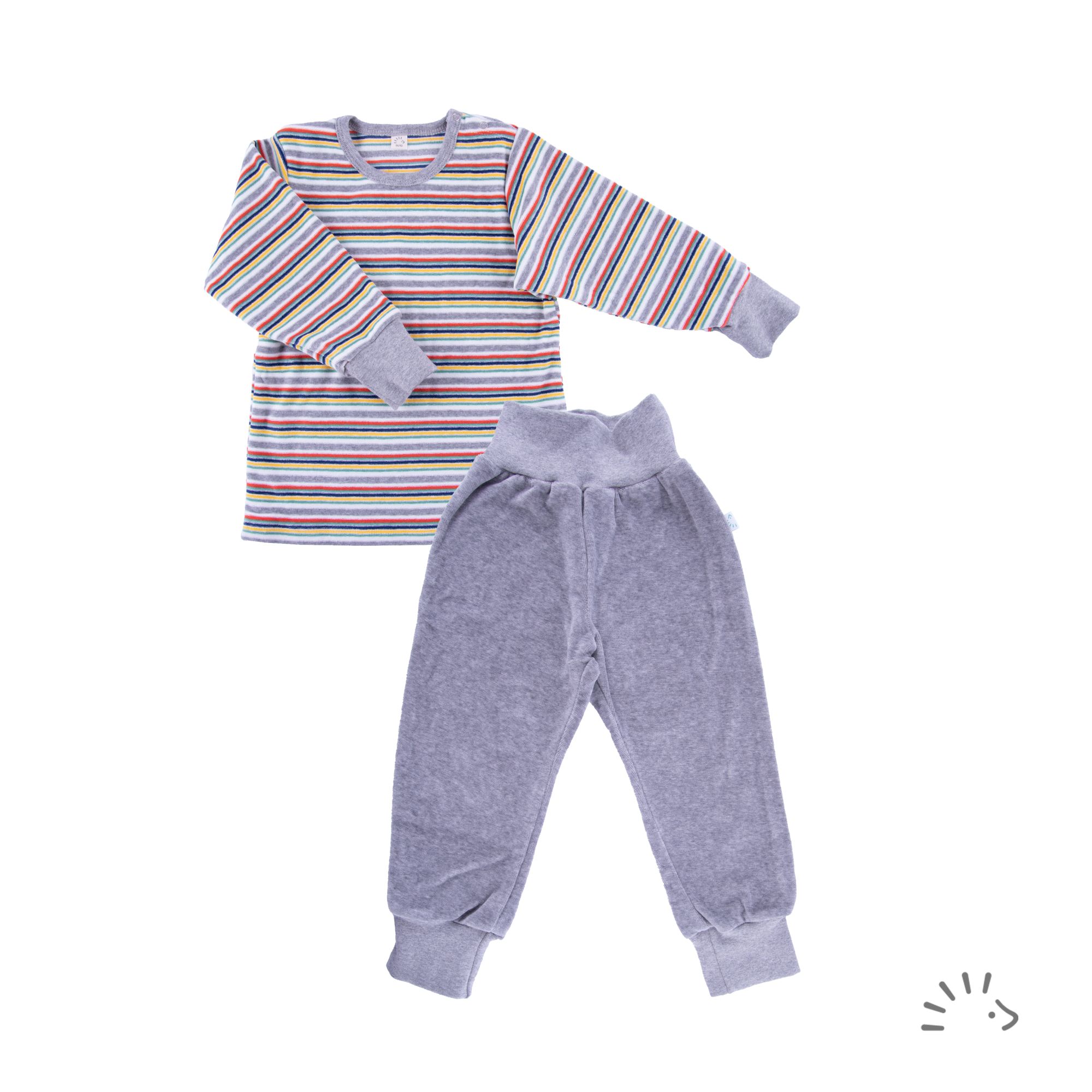 Der Pyjama Nicky ist optimal für die kalte Jahreszeit. Das anschmiegsame, weiche Nickymaterial für Oberteil und Hose aus 100% Bio-Baumwolle sorgen für ein angenehmes Tragegefühl. Die seitlich angebrachten Druckknöpfe am Hals ermöglichen ein leichteres An- und Ausziehen. Das weiche, elastische Bündchen am Bauch der Pyjamahose sorgt für einen optimalen Halt. Eine Besonderheit sind die Bündchen an den Ärmeln und Hosenbeinen, welche ein Mitwachsen ermöglichen und auch dafür sorgen, dass beim Schlafen nichts verrutscht.