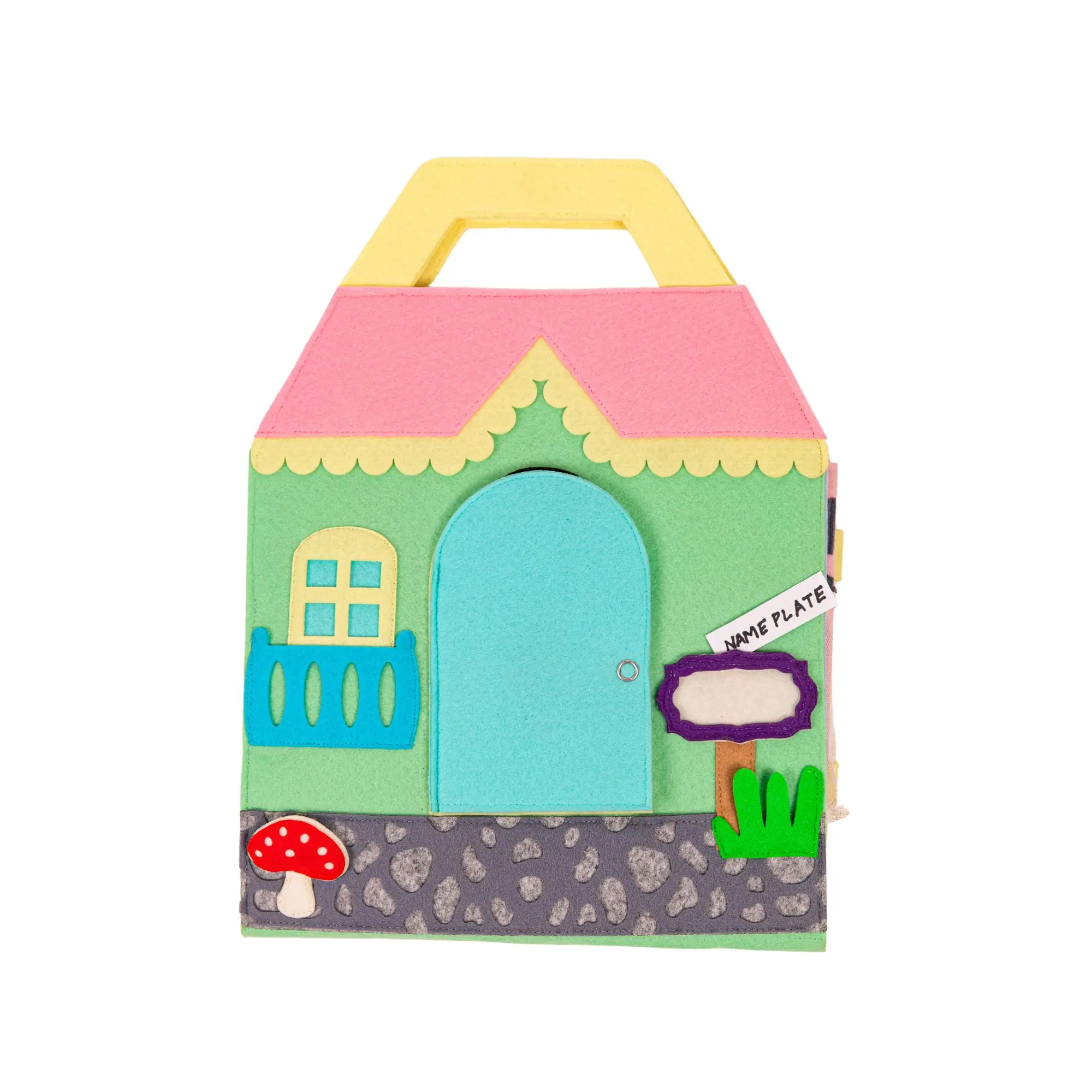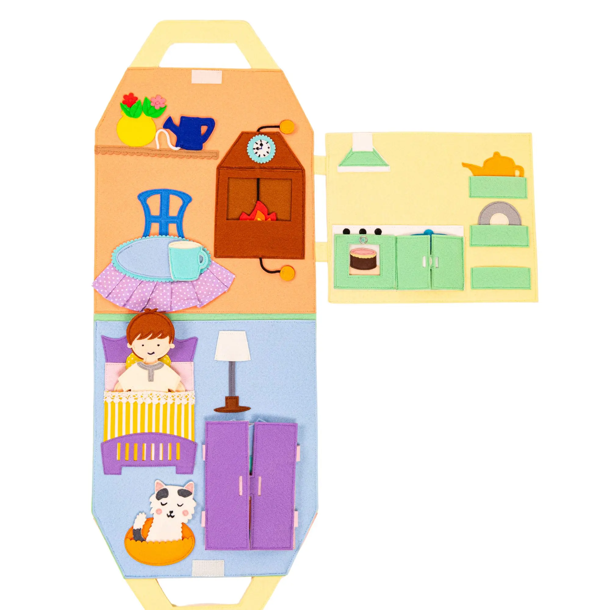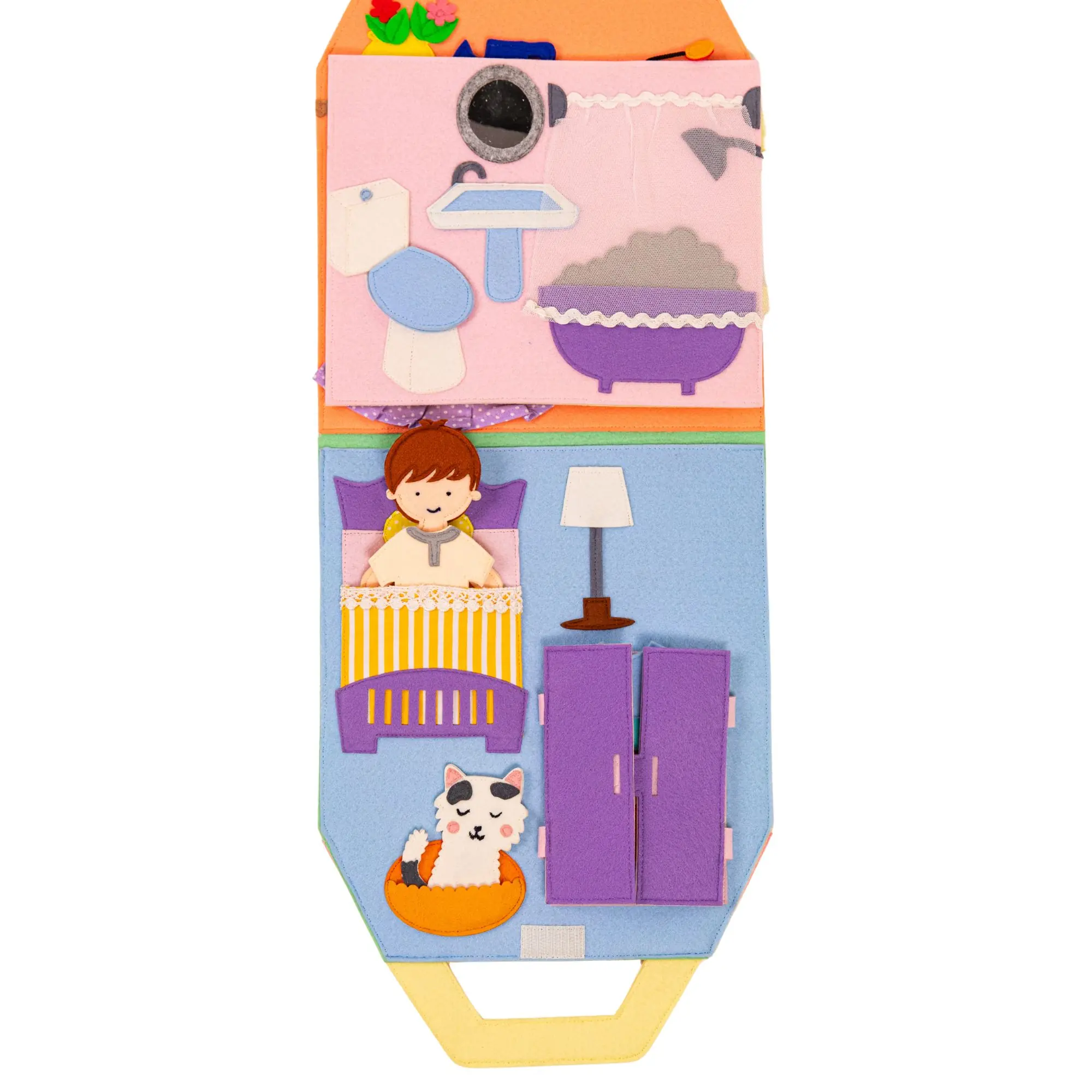 Das Quiet Book "Travel Buddy Puppenhaus" von Jolly Designs ist ein handgefertigtes, interaktives Lernspielzeug, das Kinder auf eine spannende Entdeckungsreise durch ein Puppenhaus mitnimmt.