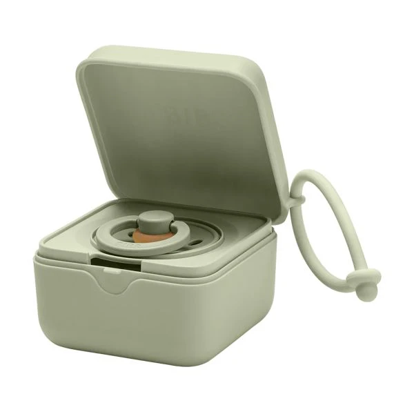 Die BIBS Schnullerbox kann für mehrere Zwecke verwendet werden. Sie dient nicht nur zur Aufbewahrung von Schnullern unterwegs, sondern auch als Sterilisierbox in der Mikrowelle oder für kleine Schätze die man findet und nicht verlieren will. Es können bis zu drei Schnuller in der Box aufbewahrt werden. Sie ist aus vollkommen sicheren lebensmittelechten Material hergestellt und kann mit einer Silikonschnur am Kinderwagen und an der Wickeltasche befestigt werden.