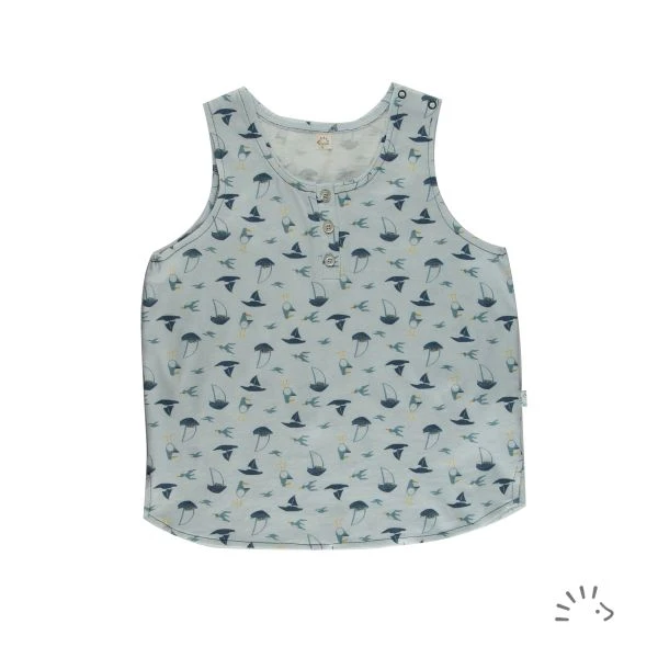 Das ärmellose Shirt ist perfekt für den Sommer. Hauchdünner Baumwollstoff lässt die Haut atmen. Extra-großzügiger Schnitt für hohe Bewegungsfreiheit. Echte Knopfleiste mit Perlmuttknöpfen in der Vorderen Mitte. Druckknöpfe an der Schulter für leichte An- und Ausziehen. Mit Kleinen Schlitzen an der Seitennaht und leicht gerundetem Saum.