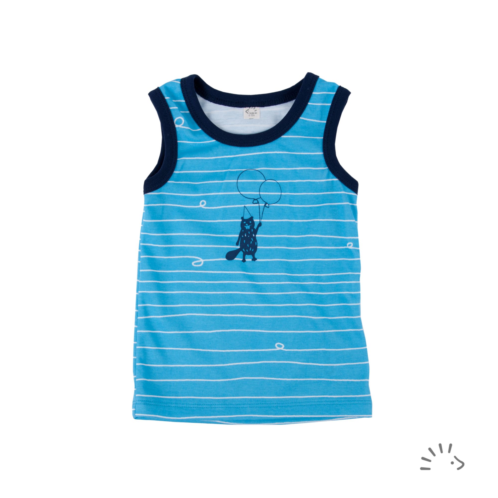 Das ärmellose Tankshirt aus dem zertifizierten Baumwollmaterial Interlock Fine eignet sich besonders für hochsommerliche Temperaturen. Passend zur Sommerkollektion "Garden Party" ist das Modell mit Luftballons und einem Biber im liebevollen Handsiebdruck bedruckt.