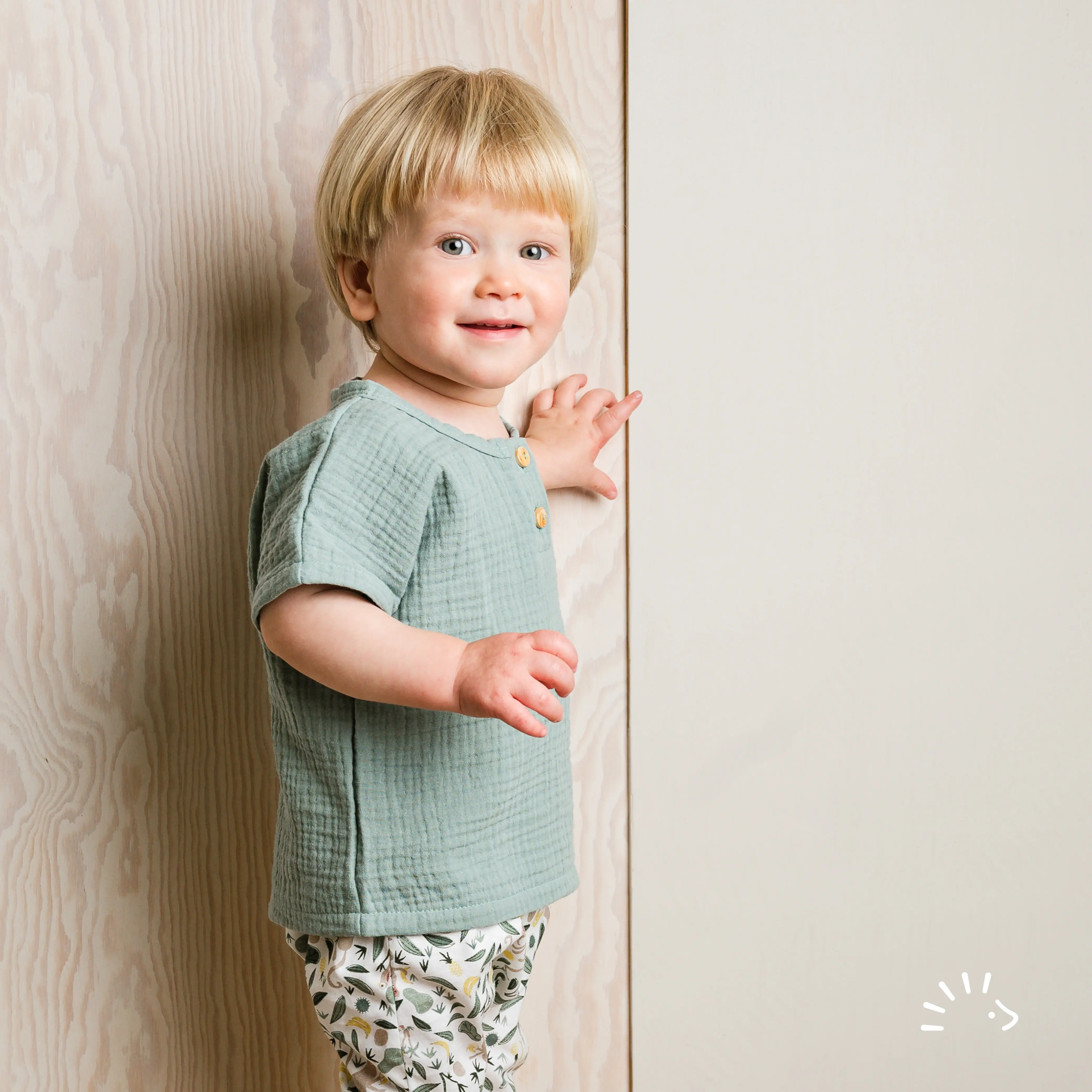 Das T-Shirt aus luftigem Baumwoll-Musselin ist klassisch, leger und so bequem! Der hautsympathische Stoff bietet durch die spezielle Oberflächenstruktur besonders hohen Tragekomfort. Weite, lässige Passform mit angeschnittenen Ärmeln. Mit echten Kokosnussknöpfen am Halsloch.