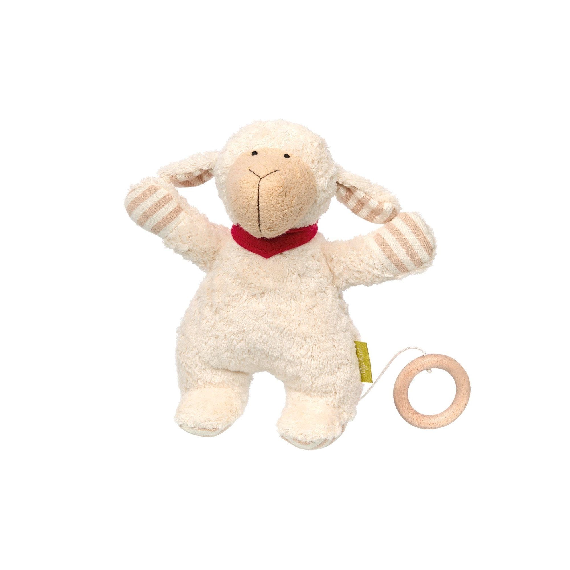 Die Spieluhr Schaf ist aus k.b.a. Baumwolle, gefüllt mit Schafschurwolle. Wenn so so ein niedlicher Kuschelgefährte schon im Bettchen wartet, haben die Kleinen einen Grund mehr, sich auf ihr Zu-Bett-Geh-Ritual zu freuen!