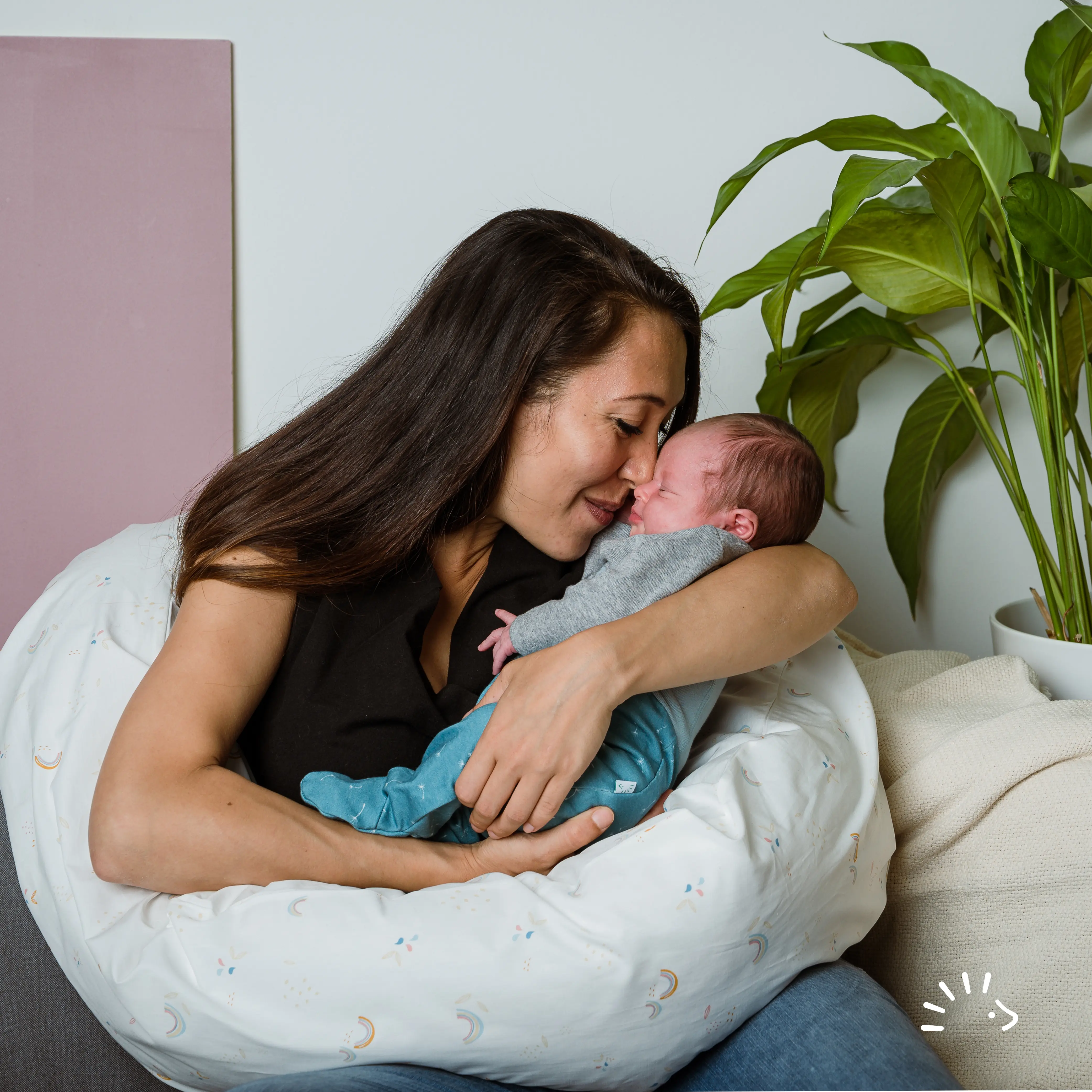 • Der Überzug ist großzügig geschnitten, da die Bio-Baumwolle beim Waschen etwas eingeht und die Größe durch Füllen des Stillkissens beeinflusst werden kann.