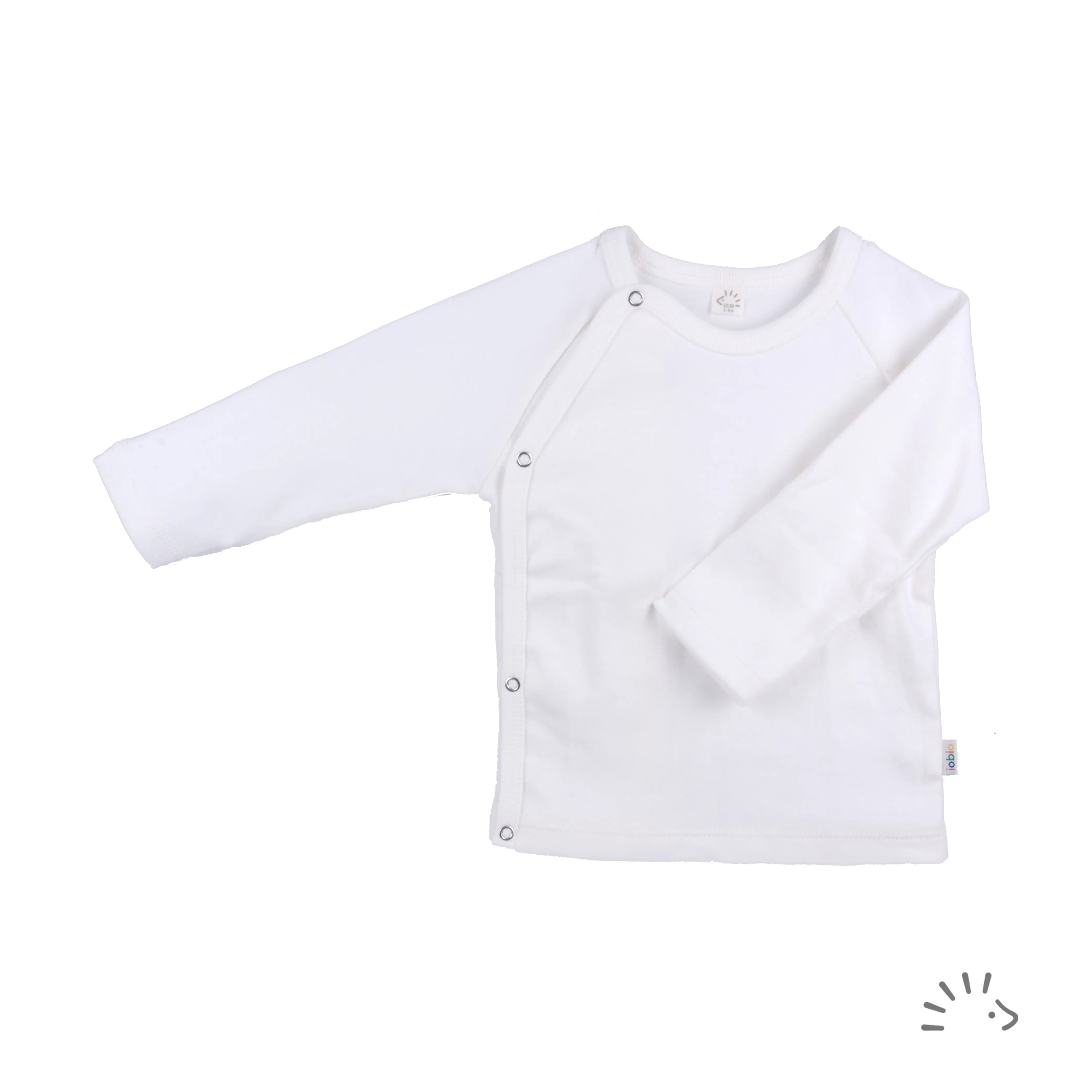 Das langärmelige Babyshirt mit seitlicher Druckknopfleiste bietet einen besonders hohen Tragekomfort. Aufgrund des speziellen Schnittes eignet sich dieses Modell bestens auch für die Kleinsten, da es einfach An- und Ausgezogen werden kann.