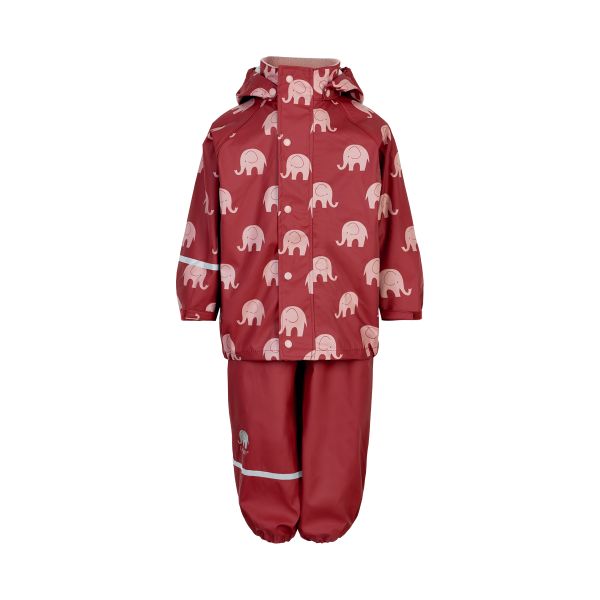 The trousers that go with the rain set are available in sizes 70 to 100 with adjustable elastic suspenders. From size 110 with elastic waistband.