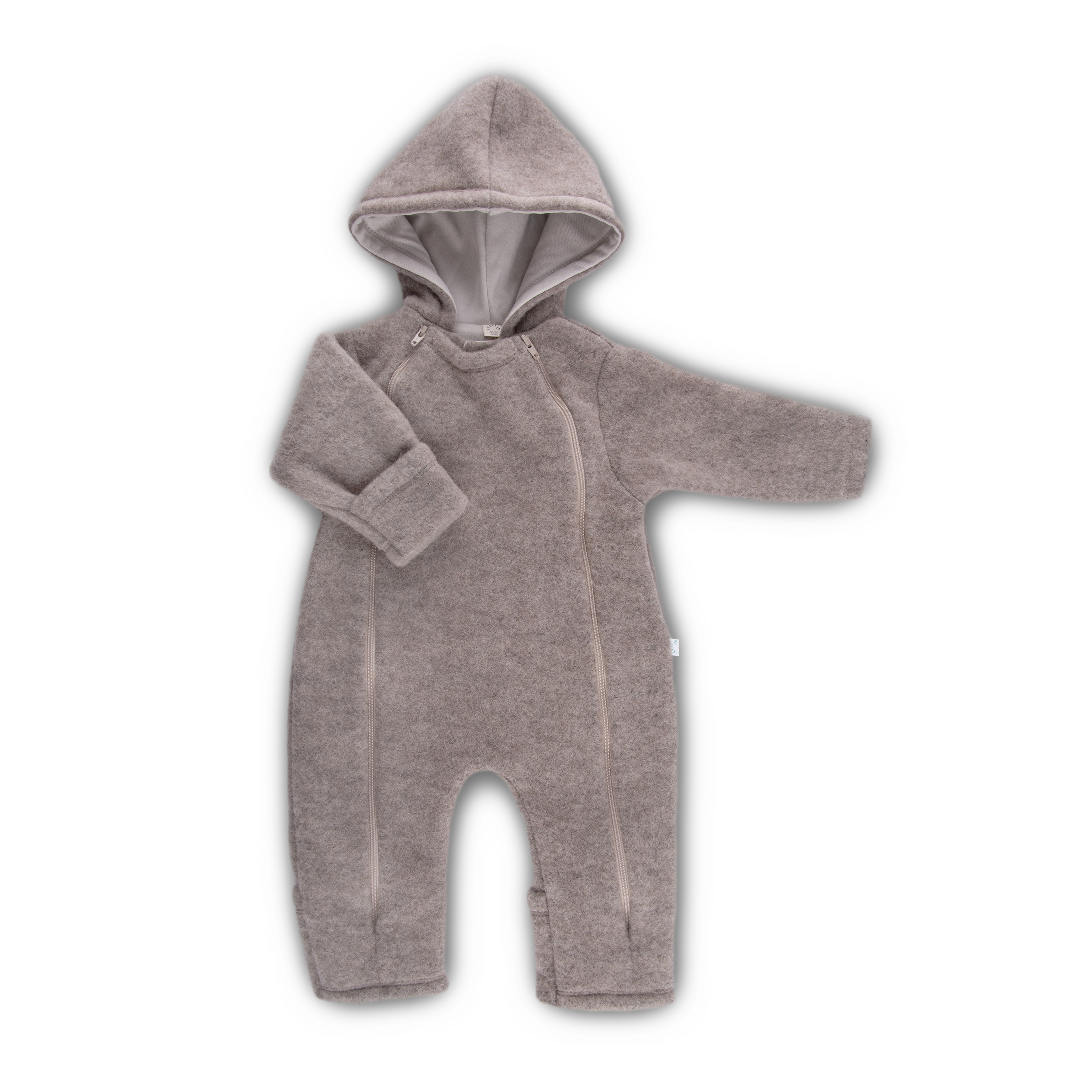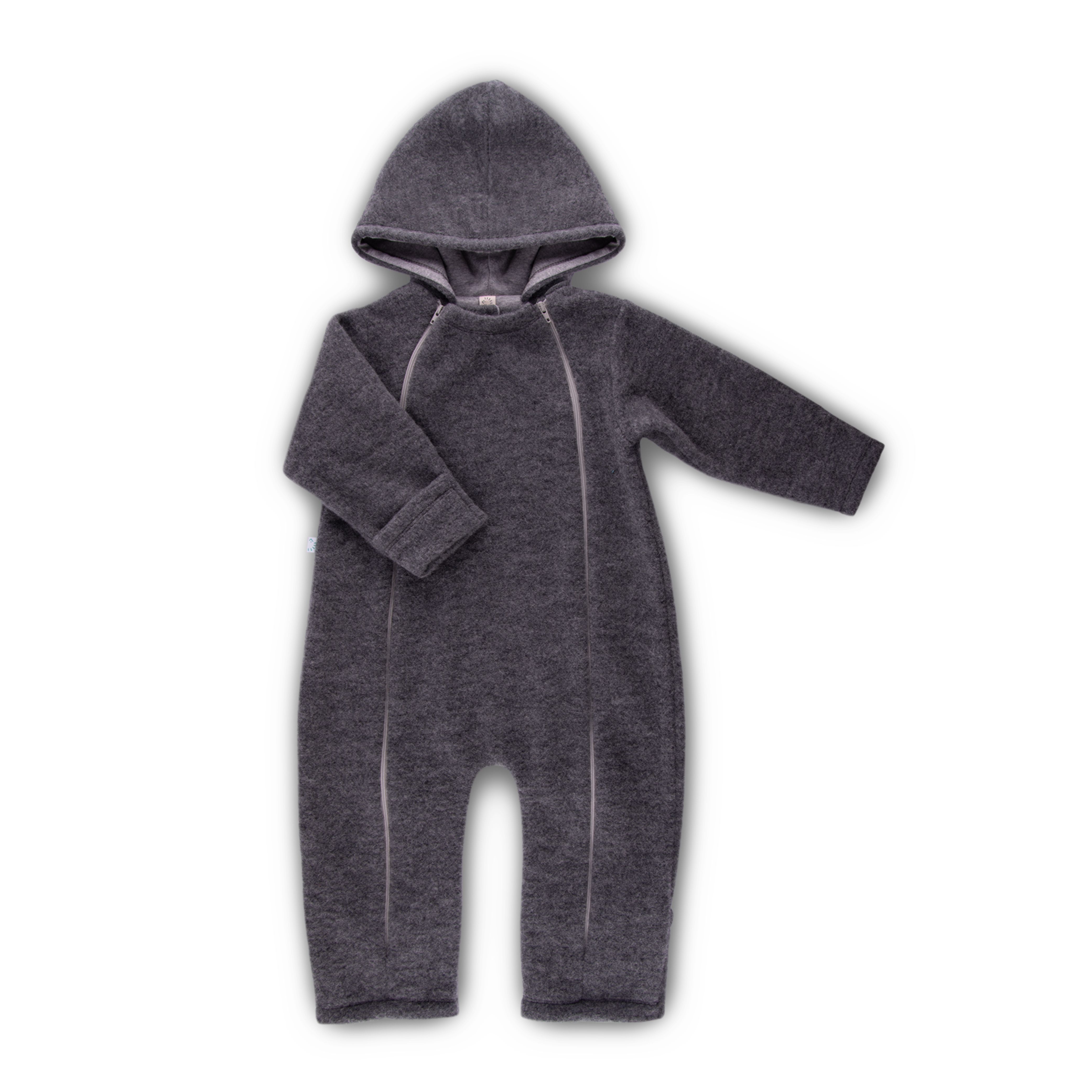 Our baby overall made from certified Merino wool is perfect for cold days. Two zippers along the front open the suit fully, making it easy to dress or undress even when lying down. The hood is lined with soft cotton interlock. Fold-over cuffs at sleeves and legs provide extra protection from the cold.