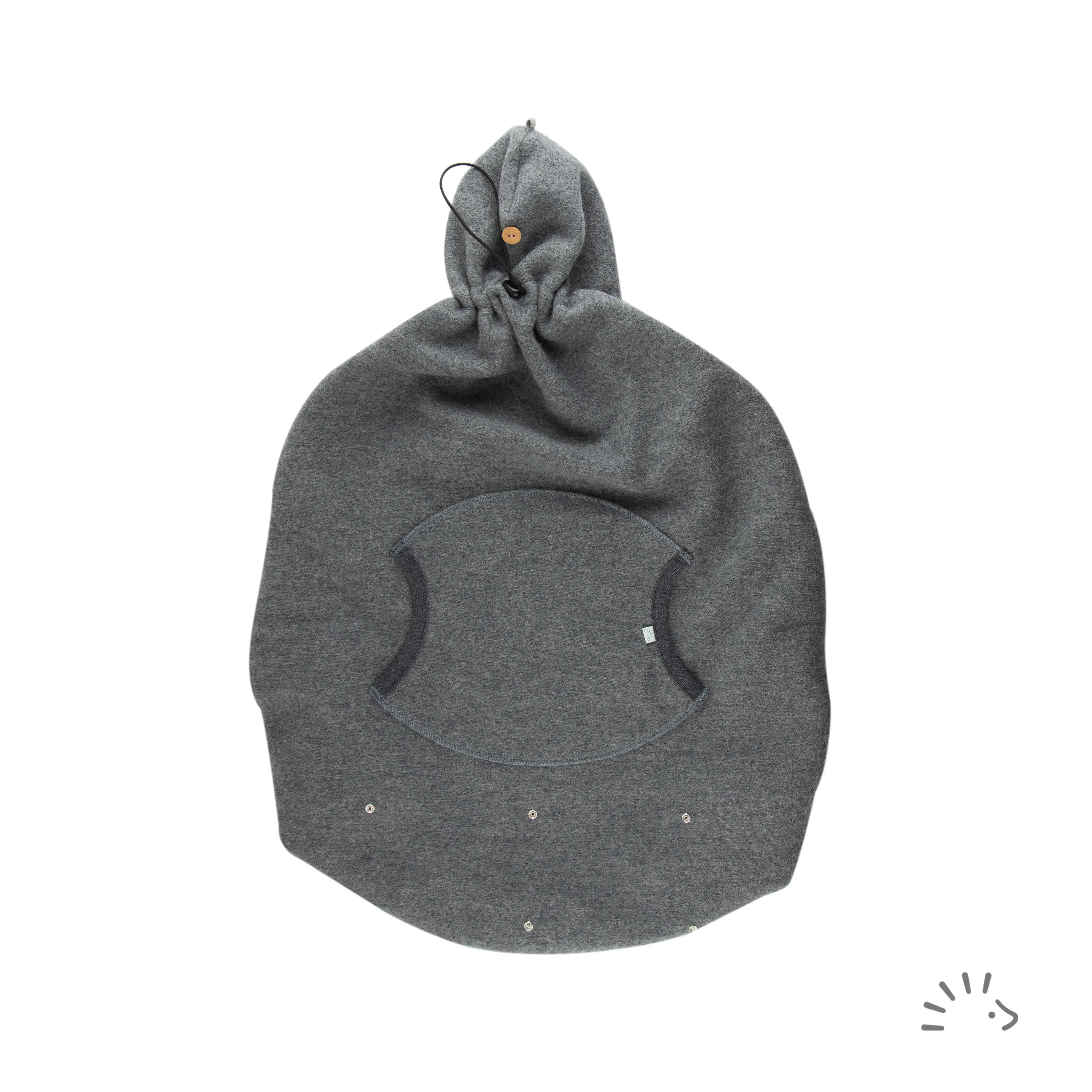 Our Baby sling cover style IGLOO GROW boiled wool from certified wool is the ideal protection during the colder months when carrying your little ones. Through two cotton ribbons on both sides the sling cover style IGLOO GROW tumbled wool is easy to attach to each baby carrier and at each baby sling. A rubber at the border allows easy coating and easily adapts to the carrying shape. The edging around is made of pure wool. The hood, which is lined with certified cotton interlock, is with an elastic band and wooden button adjustable in size and can perfectly snuggle to baby’s head shape. Exterior attached kangaroo pocket provides hand protection and storage room for small things.