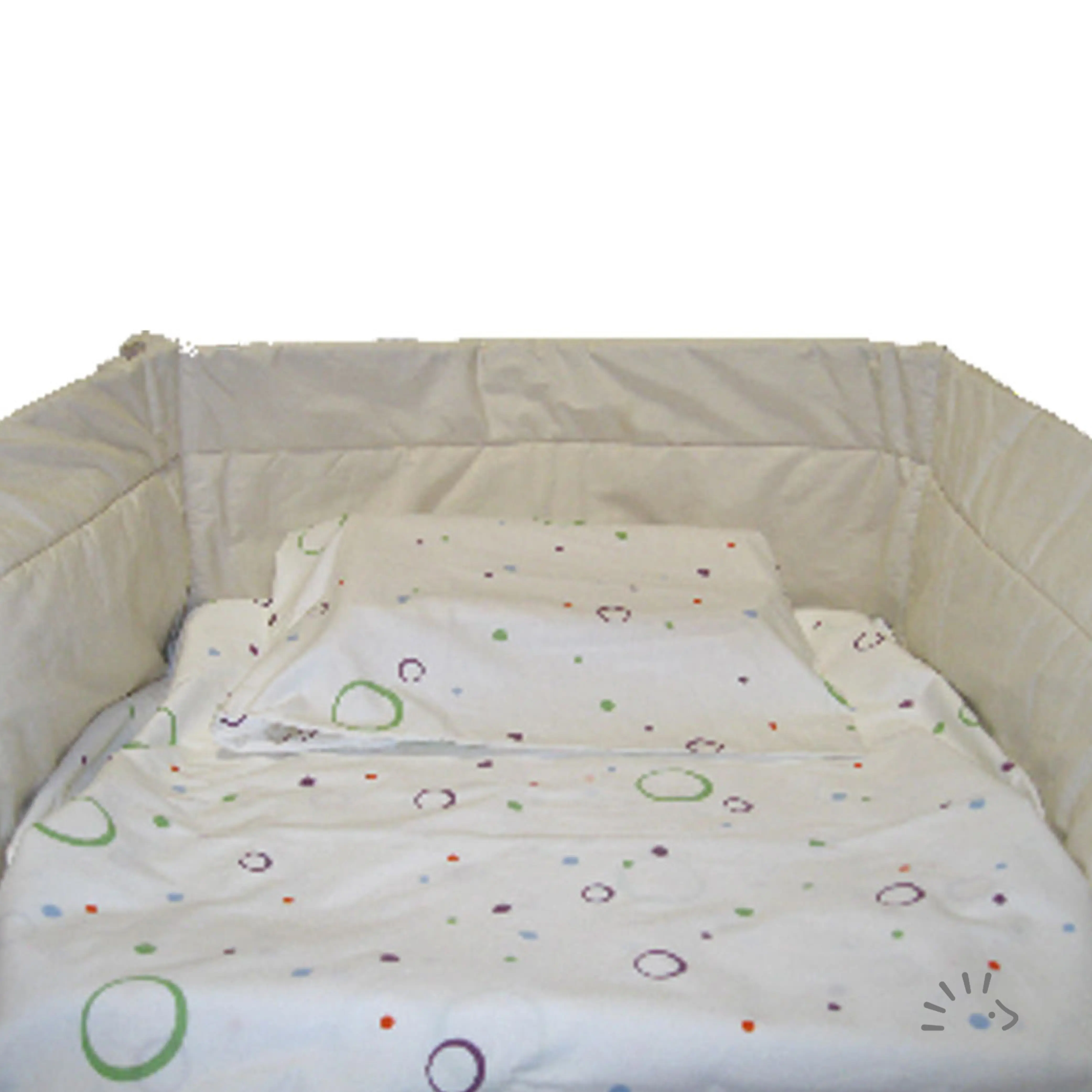 Our bed bumper made from certified cotton poplin with the soft lining of lavalan® is the ideal protection and security for your child. The bed bumper is simply fixed with 4 straps at the edge of the lattice and is suitable for beds with sizes 60x120 cm to 70x140 cm.