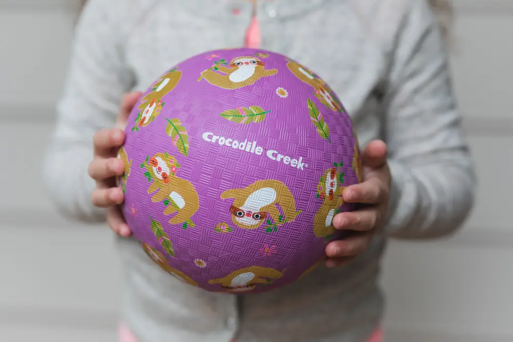 The Crocodile Creek ball made of high-quality natural and synthetic rubber is easy to hold with its structured surface and is very popular with small children thanks to its cheerful design.