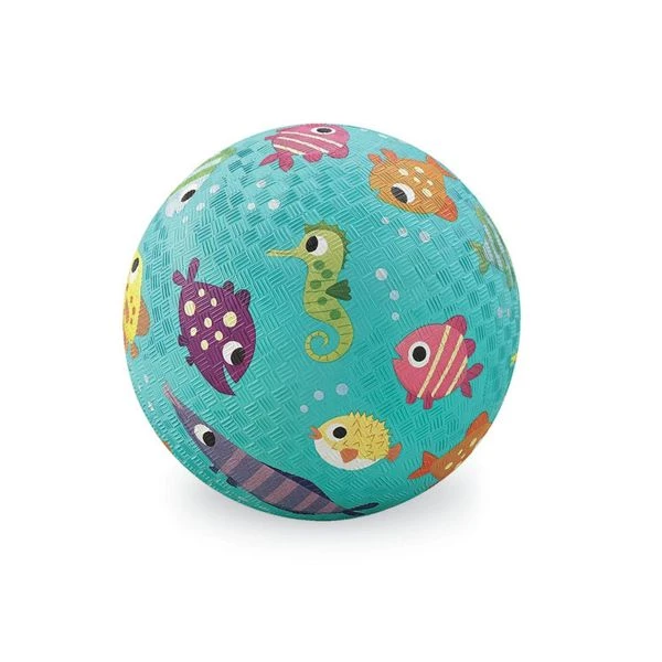 The Crocodile Creek ball with colourful fish made of high-quality natural and synthetic rubber is easy to hold with its structured surface and is very popular with small children thanks to its cheerful design. It is heavy-duty and is shipped inflated.