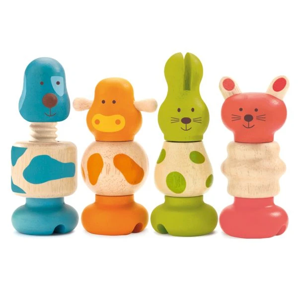 With the educational toy Vis-animo by DJECO, your child can playfully practice the screwing movement. Screw together the body parts in the correct order or mix them up to create your own crazy animals.