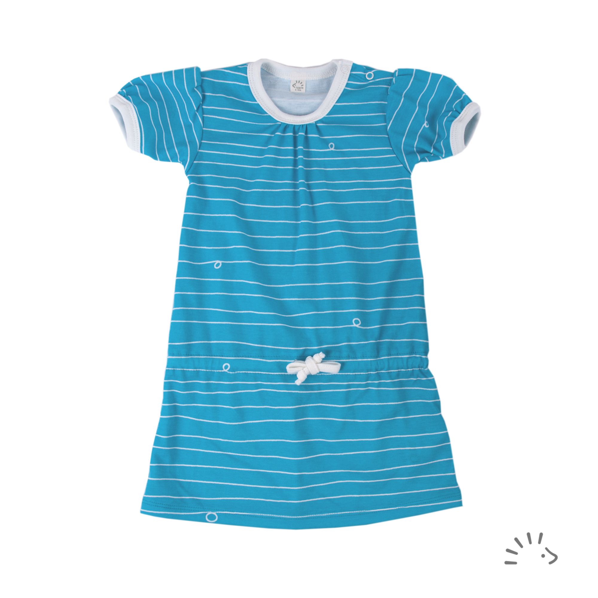 The light summer dress style CHARLOTTE is the ideal basic companion for sunny days. The soft interlock fine is particularly skin-friendly and flexible and is therefore optimally suitable for everyday life. Snaps on one shoulder simplify dressing and undressing. The slight gathering at the neckline gives dress an additionally playful touch. Due to an inserted waistband, the breadth of the dress can be adjusted to girth.