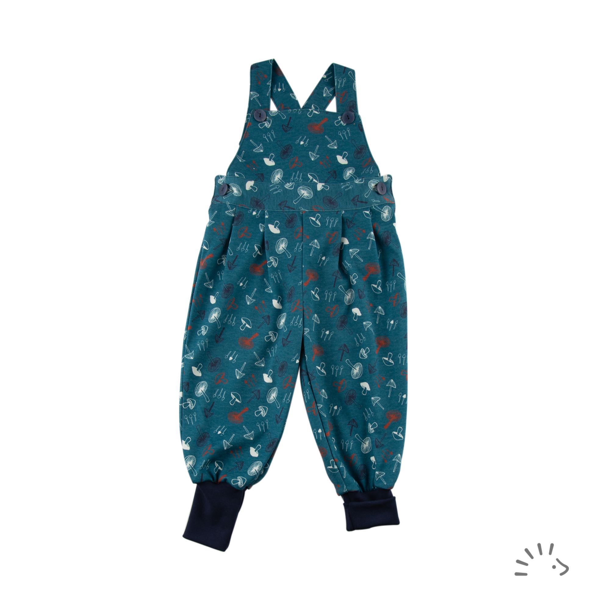 The dungarees made of certified cotton interlock fabric are chic and so comfortable!